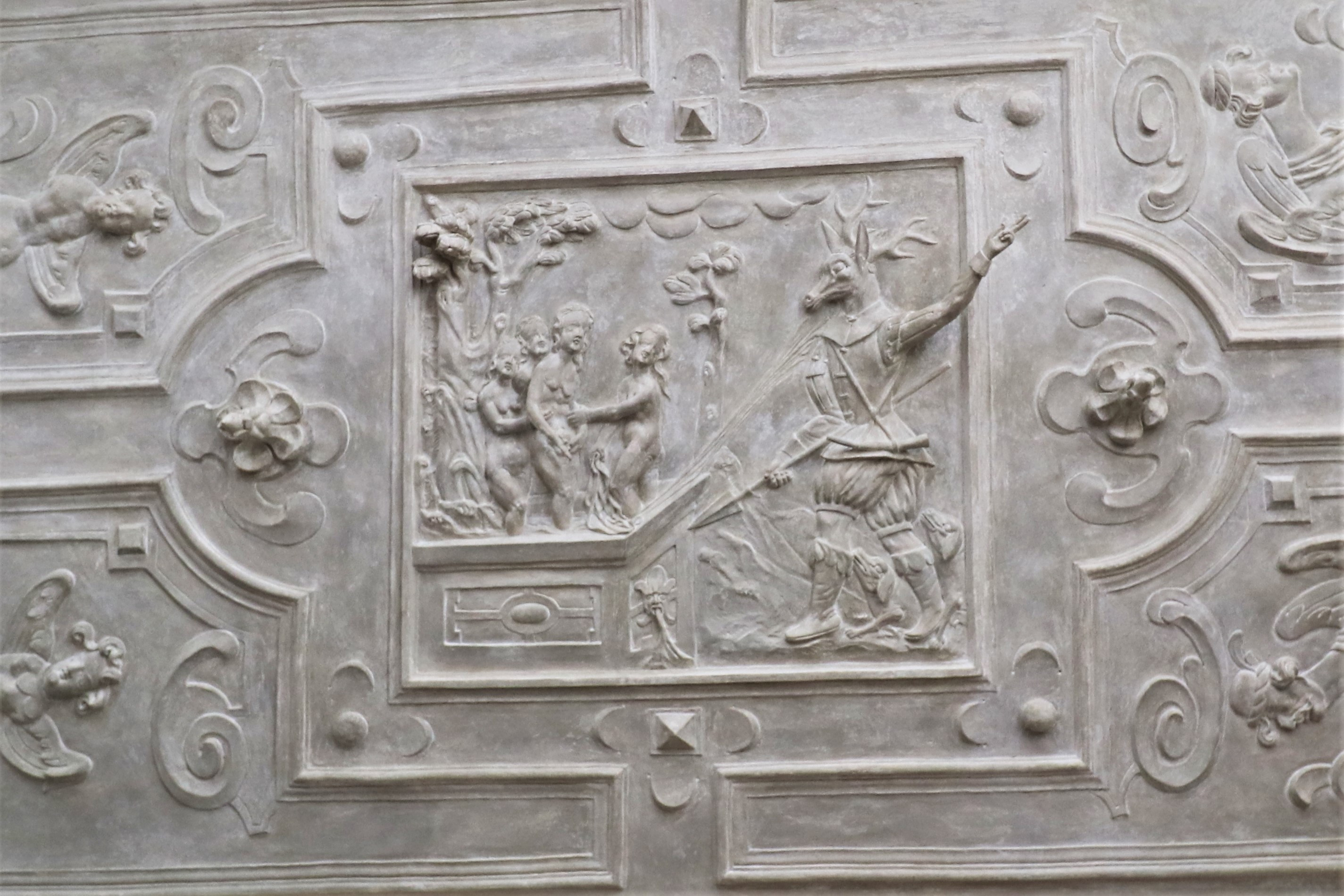 Zwischen 1583 und 1593 erbaut, Stuckdecke im kleinen Saal.