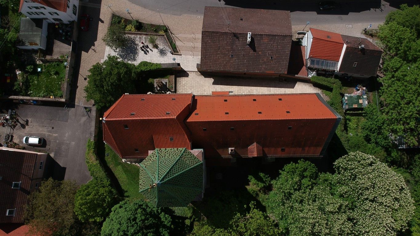 Im spätgotischen Stil 1440–98 erbaut. Älteste Kirche der Kernstadt Ludwigsburg, frühere Wallfahrtskirche. Netzrippengewölbe mit Apostelzyklus, Prophetenhalbfiguren als Gewölbeträger im Schiff, Glasgemälde und herausgearbeitete Figuren. An der Kanzel: Maria mit dem Kinde und die vier wichtigsten Kirchenlehrer des Abendlandes.