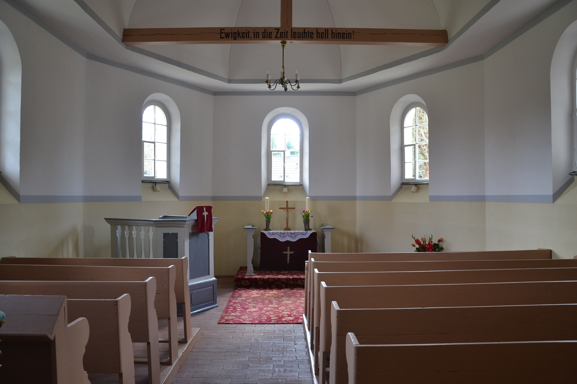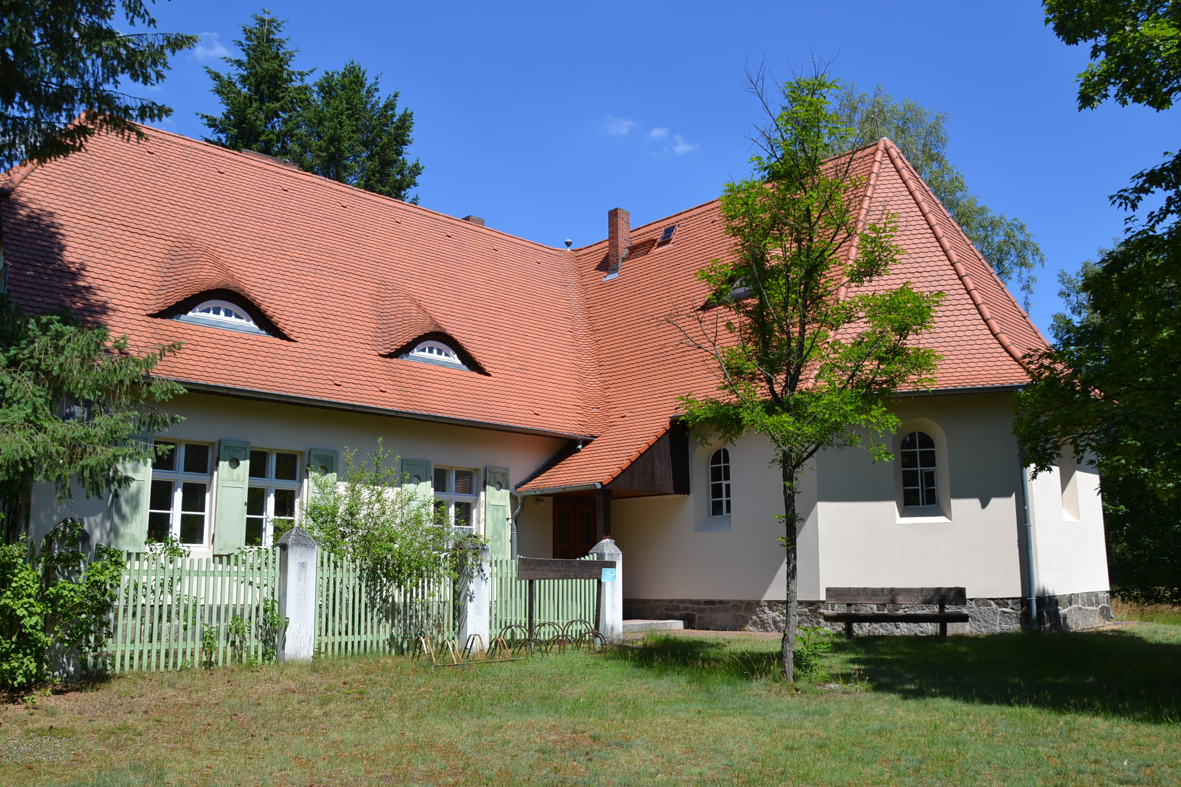 Gemeinschaftsbau von Kirche, Schule und Lehrerwohnung. Ein ehemaliger Klassenraum wurde als Schulmuseum wieder eingerichtet und 2004 als Museum eröffnet, historische Einklassenschule 1909 bis 1972.