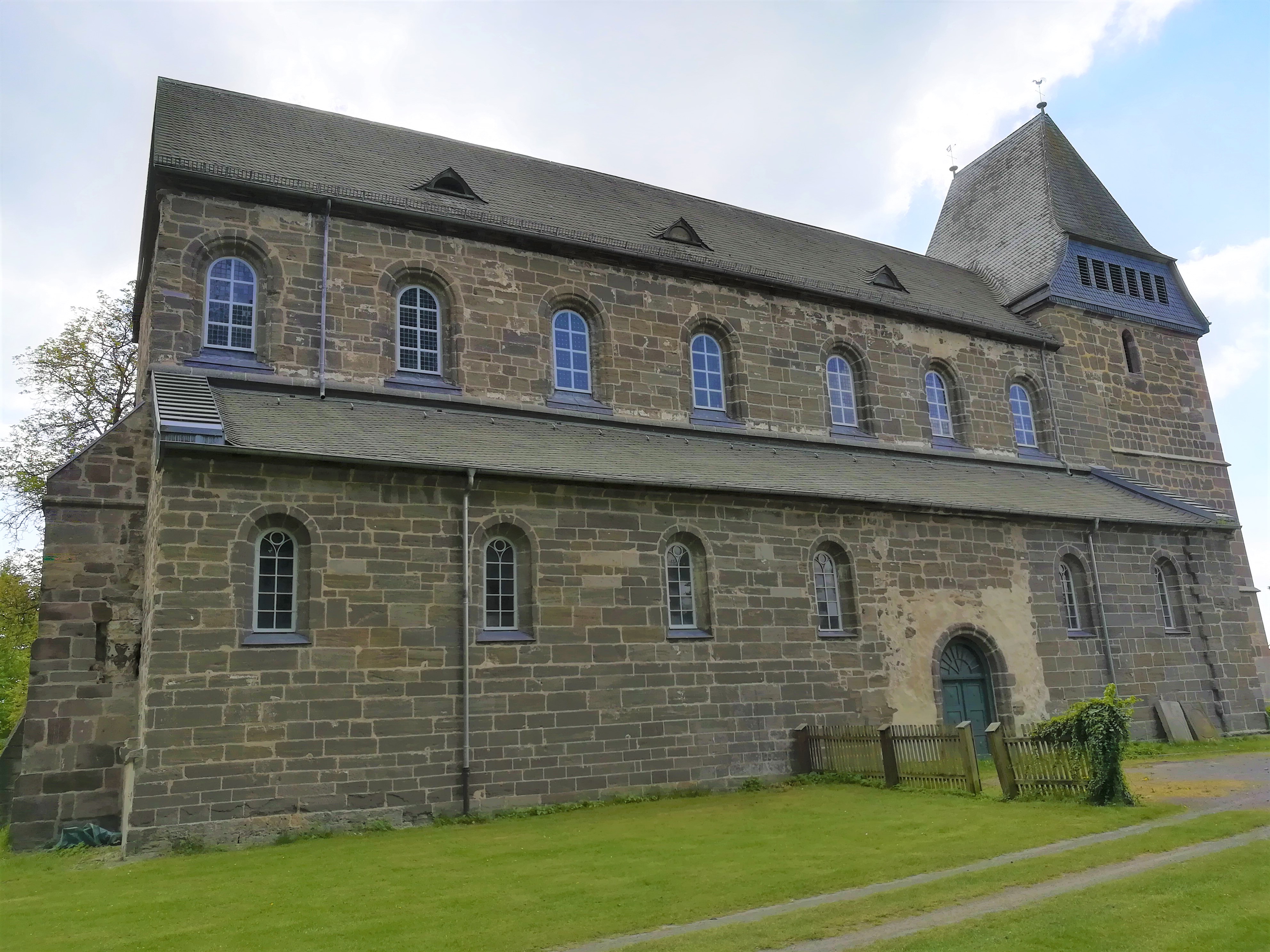 Stiftskirche des Prämonstratenserordens. Im 13. Jh. erbaut, dreischiffige Basilika mit dreigeschossigem spätgotischem Westturm. Heute ev. Pfarrkirche, romanisches Säulenportal mit Tympanon.