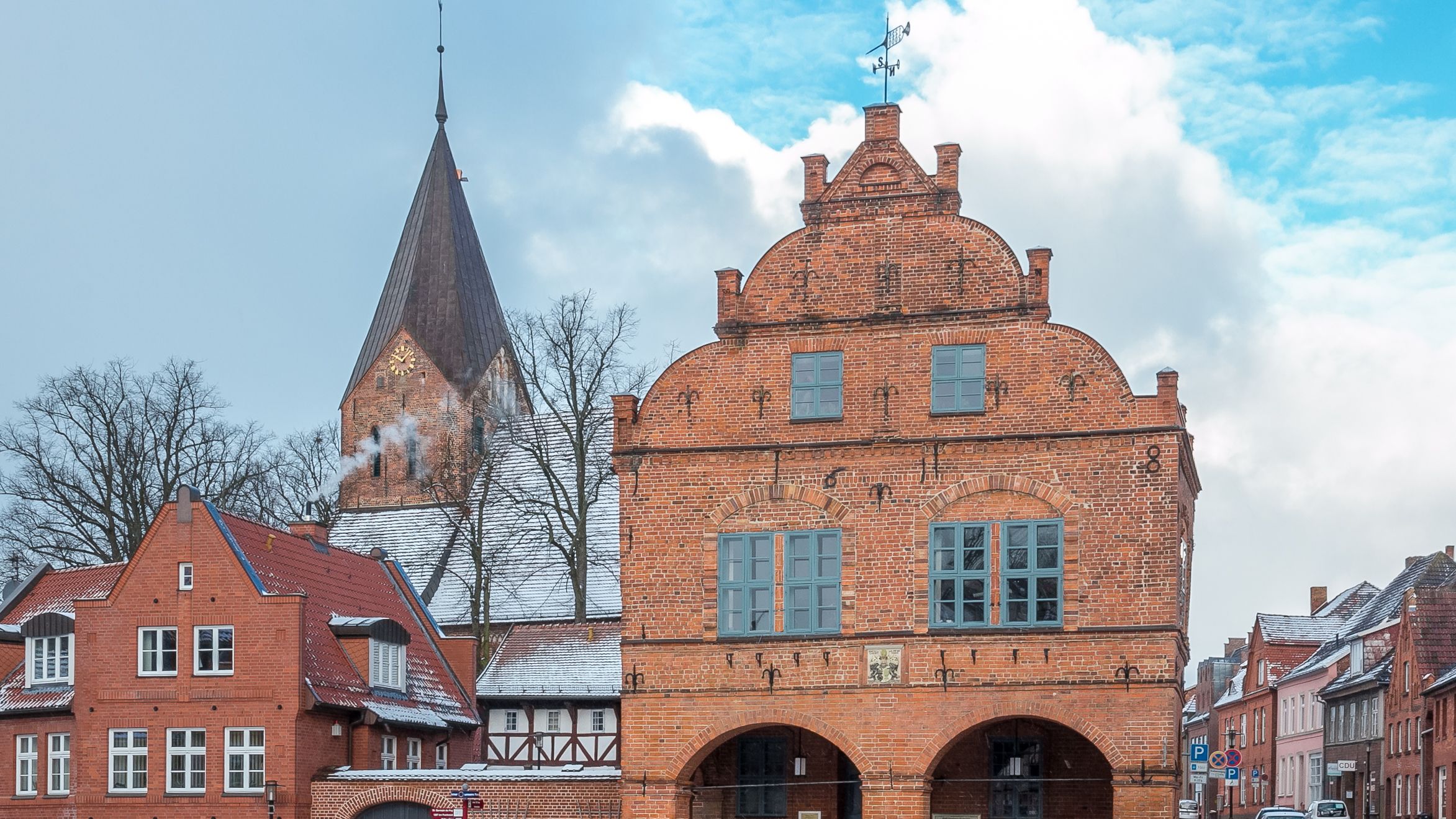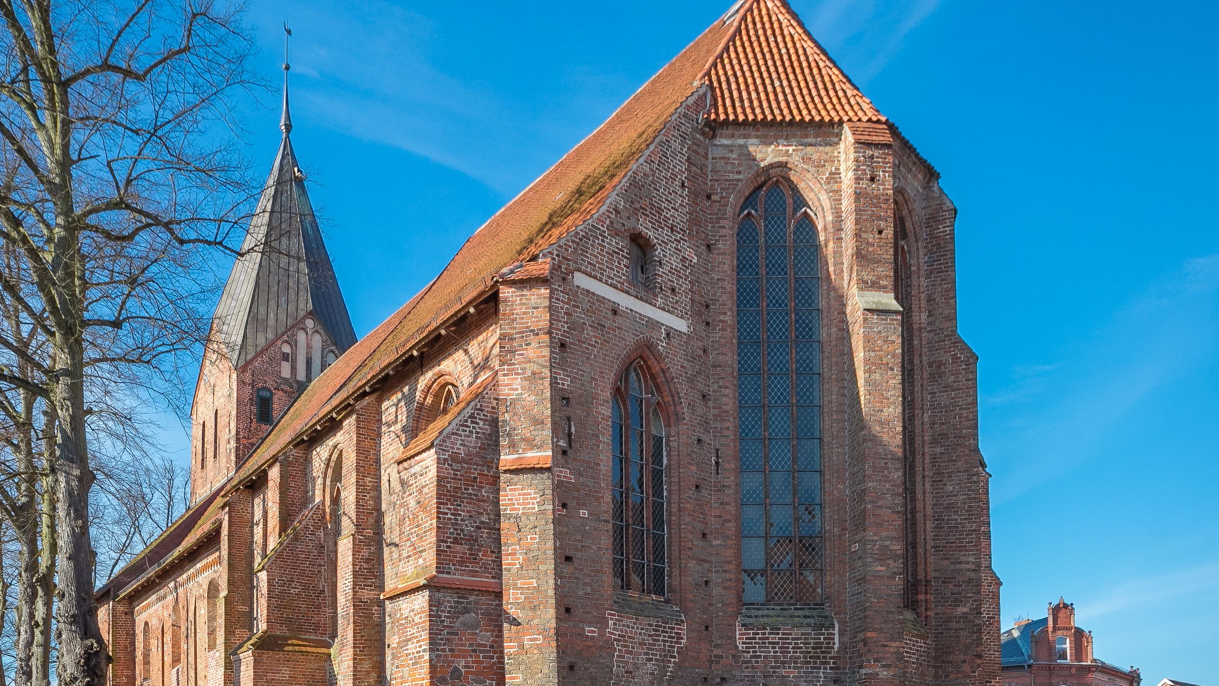 Älteste erhaltene Backsteinhallenkirche Norddeutschlands, die um 1215-30 mit niedrigem Westturm errichtet wurde. Um 1400 erhielt die langgestreckte, spätromanische Kirche einen gotischen Chor. Die Kapellenanbauten an der Nordseite entstanden vom 14.-16. Jh. Teile des Schiffes und der untere Turmbereich sind noch in den ursprünglichen romanischen Bauformen erhalten, auch das Rosettenfenster an der Westseite stammt aus dieser Zeit.