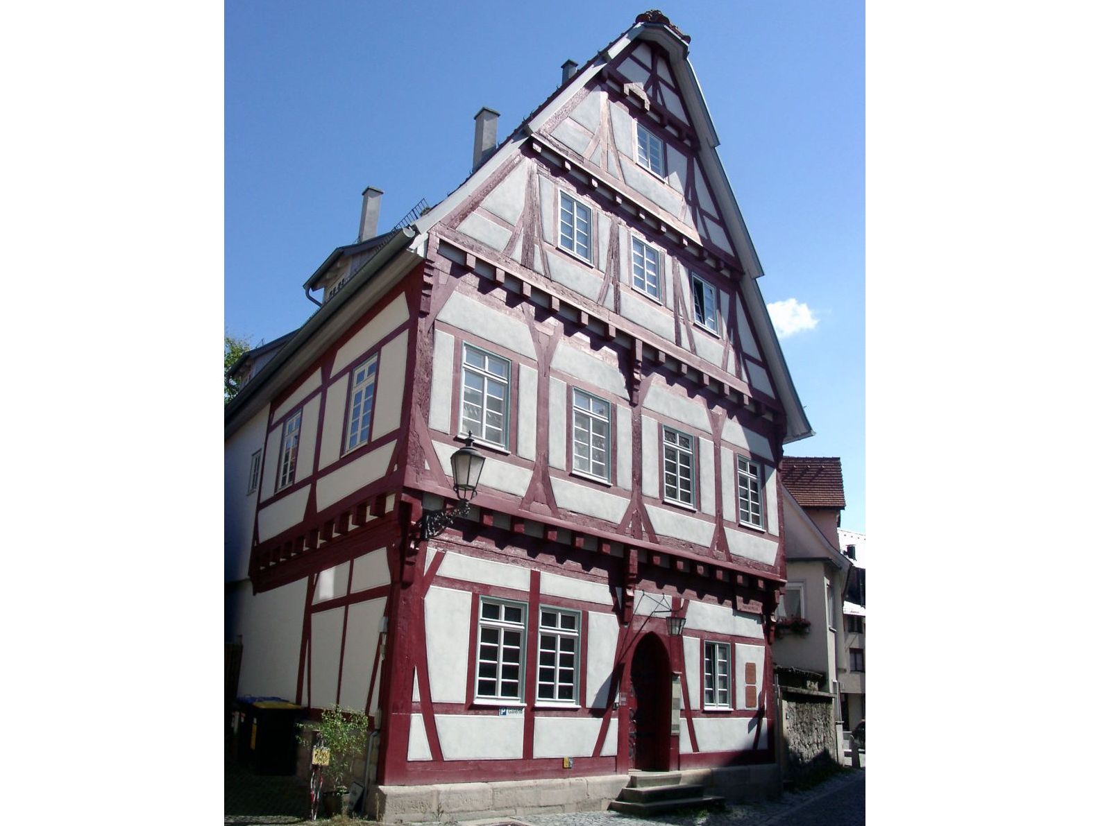 Fachwerkhaus des Spätmittelalters von 1463, 1819-1938 Synagoge, seit 2012 wieder jüdisches Gemeindezentrum der Israelitischen Religionsgemeinschaft Württembergs. Mit dem Bezug der Räume wurde die jüdische Gemeinde erstmals wieder zu einem sichtbaren Teil der Esslinger Stadtlebens.
