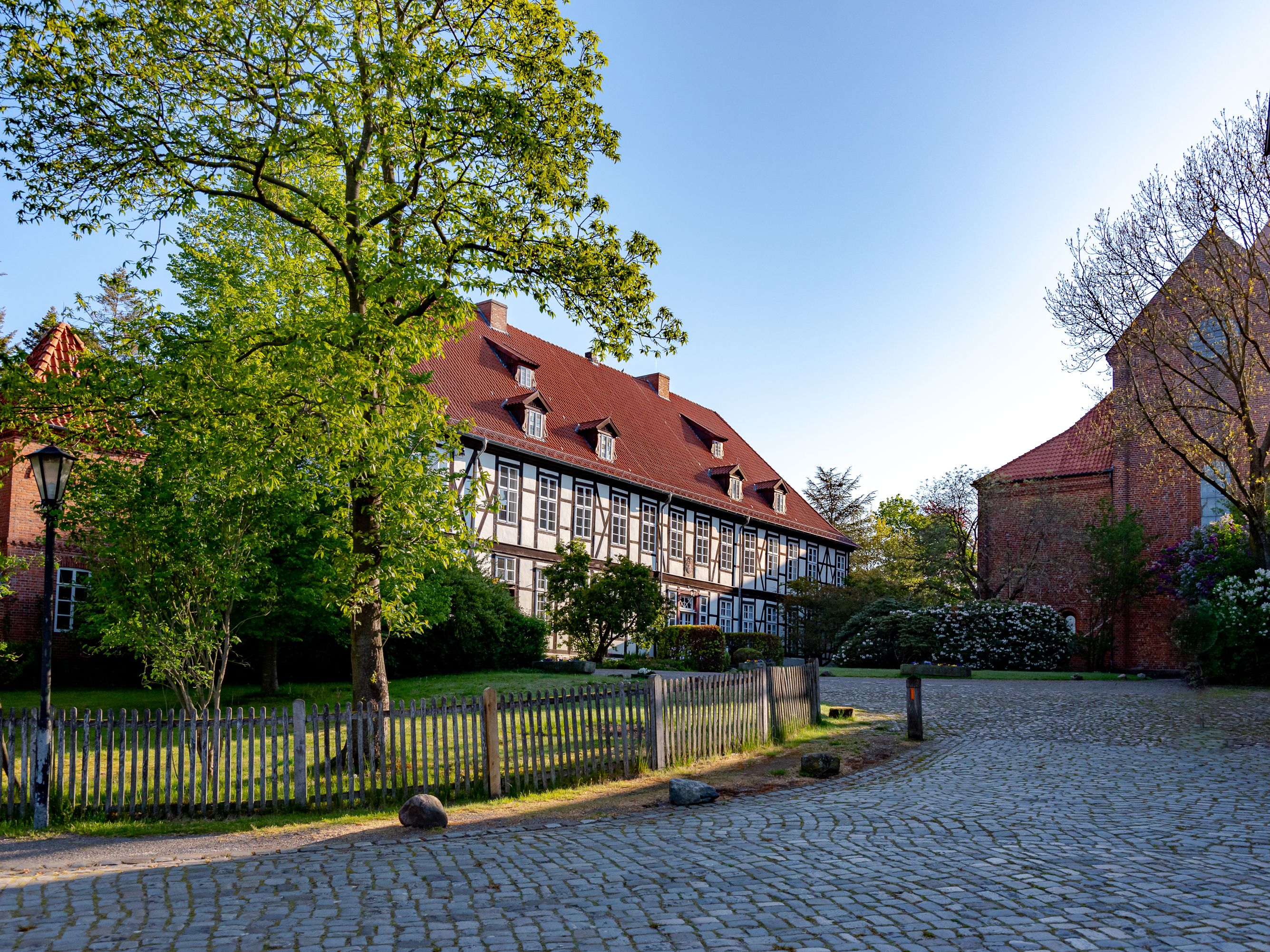 1754-58 erbaut, zweigeschossiges Fachwerkgebäude, Kapitelsaal und Kanonikuszimmer mit originaler, handbemalter Wandbespannung.