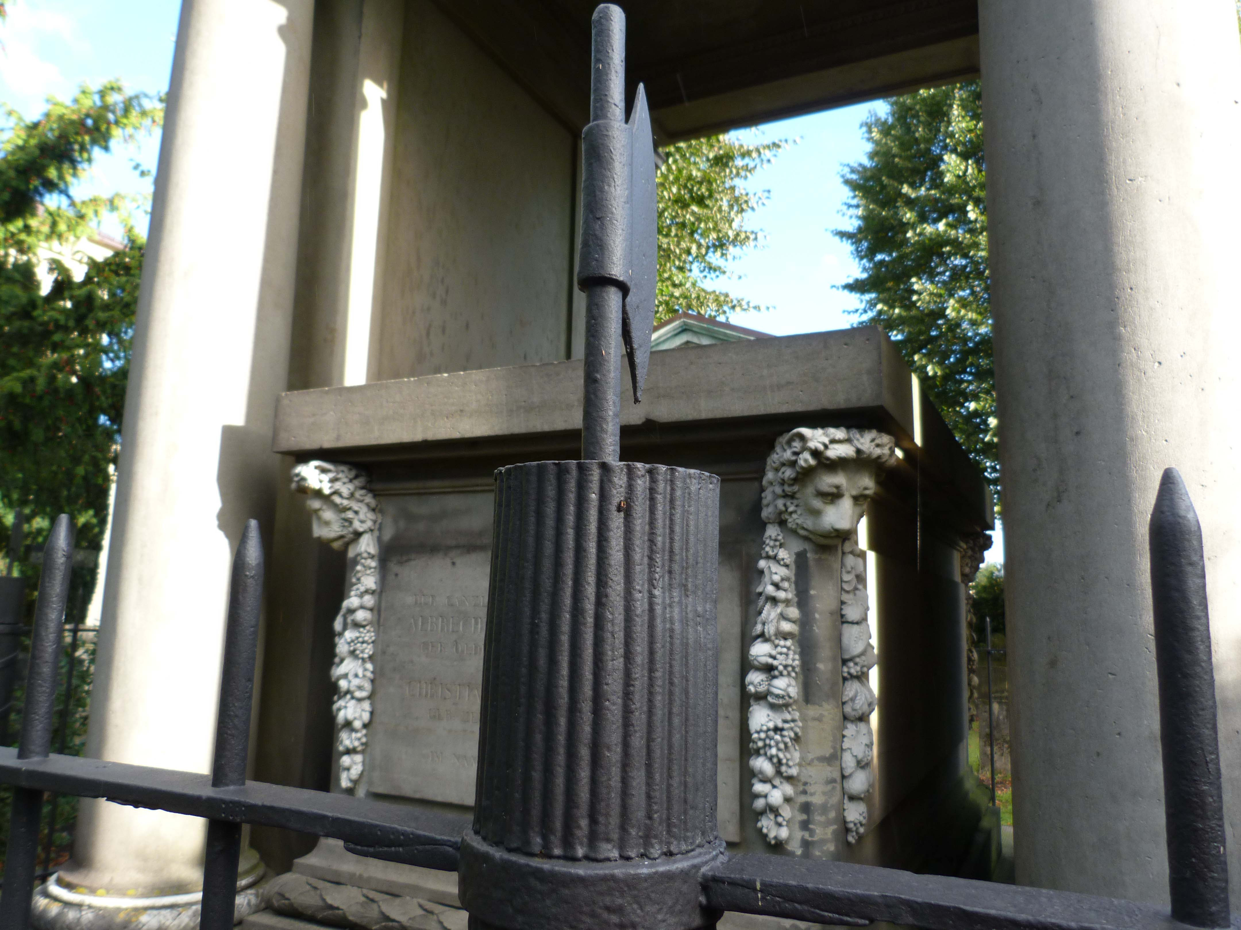 Als Begräbnisplatz für das ehemalige Siechenhaus der Stadt begründet und seit dem 15. Jh. belegt, ist der Kirchhof ab 1791 städtischer Friedhof mit Grabmalen vom Barock bis zur Moderne. Viele Grabmale sind aus der Zeit des Klassizismus, etwa das Herzogliche Mausoleum von 1786-90, das als erster klassizistischer Bau der Stadt gilt. Die seit 2014 laufende Restaurierung der Herzoglichen Abteilung um das Mausoleum ist mittlerweile größtenteils abgeschlossen.