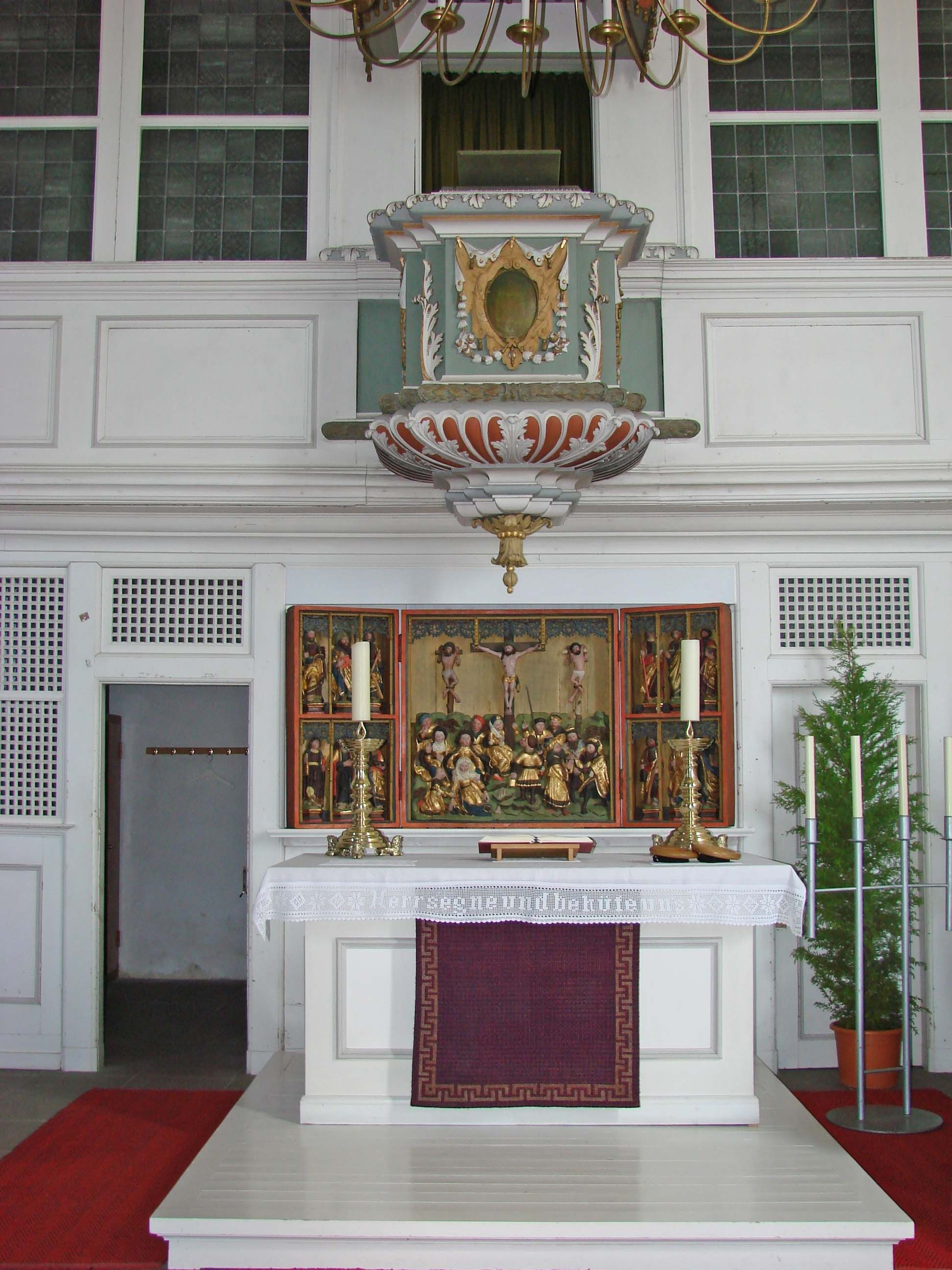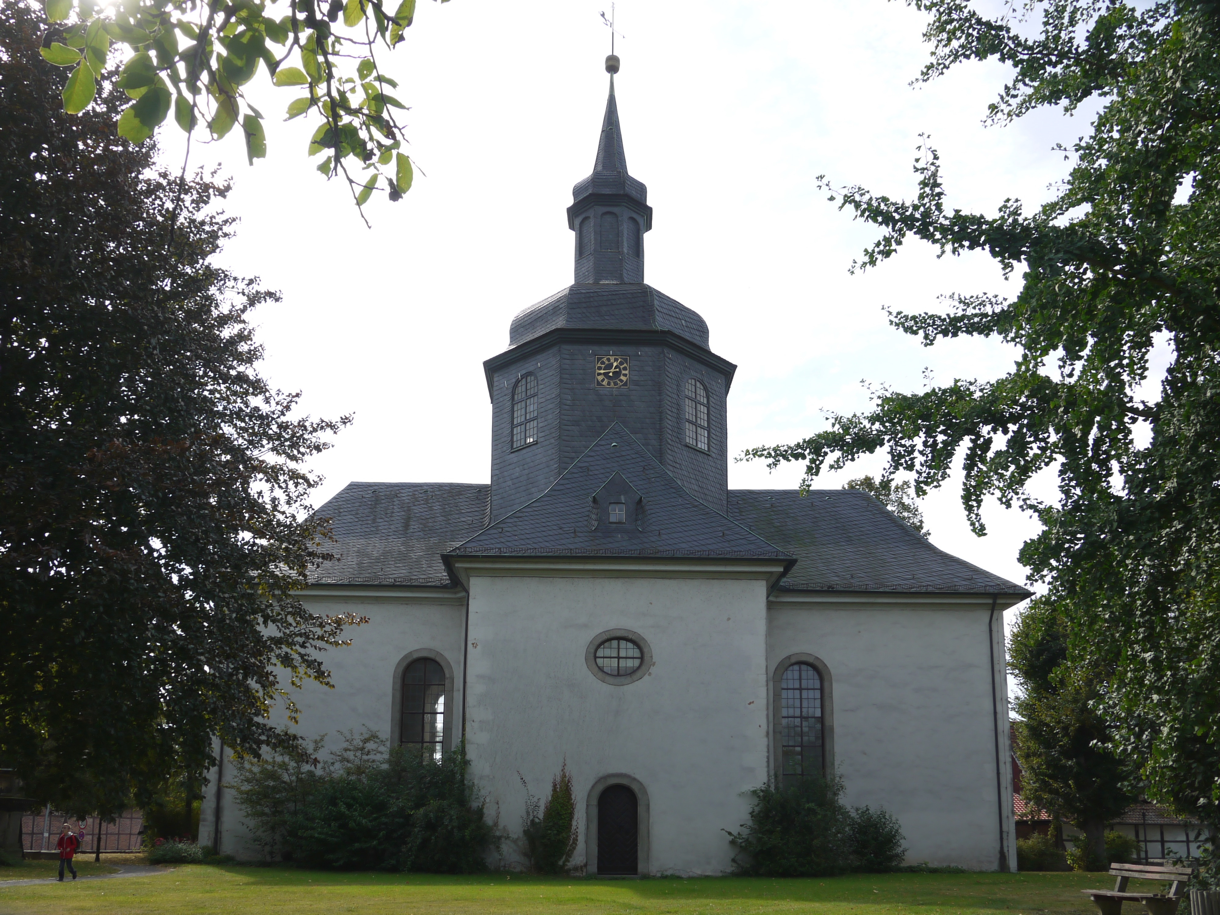 Im Auftrag von Erbprinz August Wilhelm von Braunschweig durch den Festungsbaumeister Johann Caspar Völker 1713-17 errichtet. Kreuzförmiger Quersaalbau mit oktogonalem Vierungsturm und Kuppel, Flügelaltar aus dem 16. Jh. Der etwas abseits stehende Glockenturm wurde 1768-69 in Fachwerk errichtet. Herausragender protestantischer Kirchenbau.