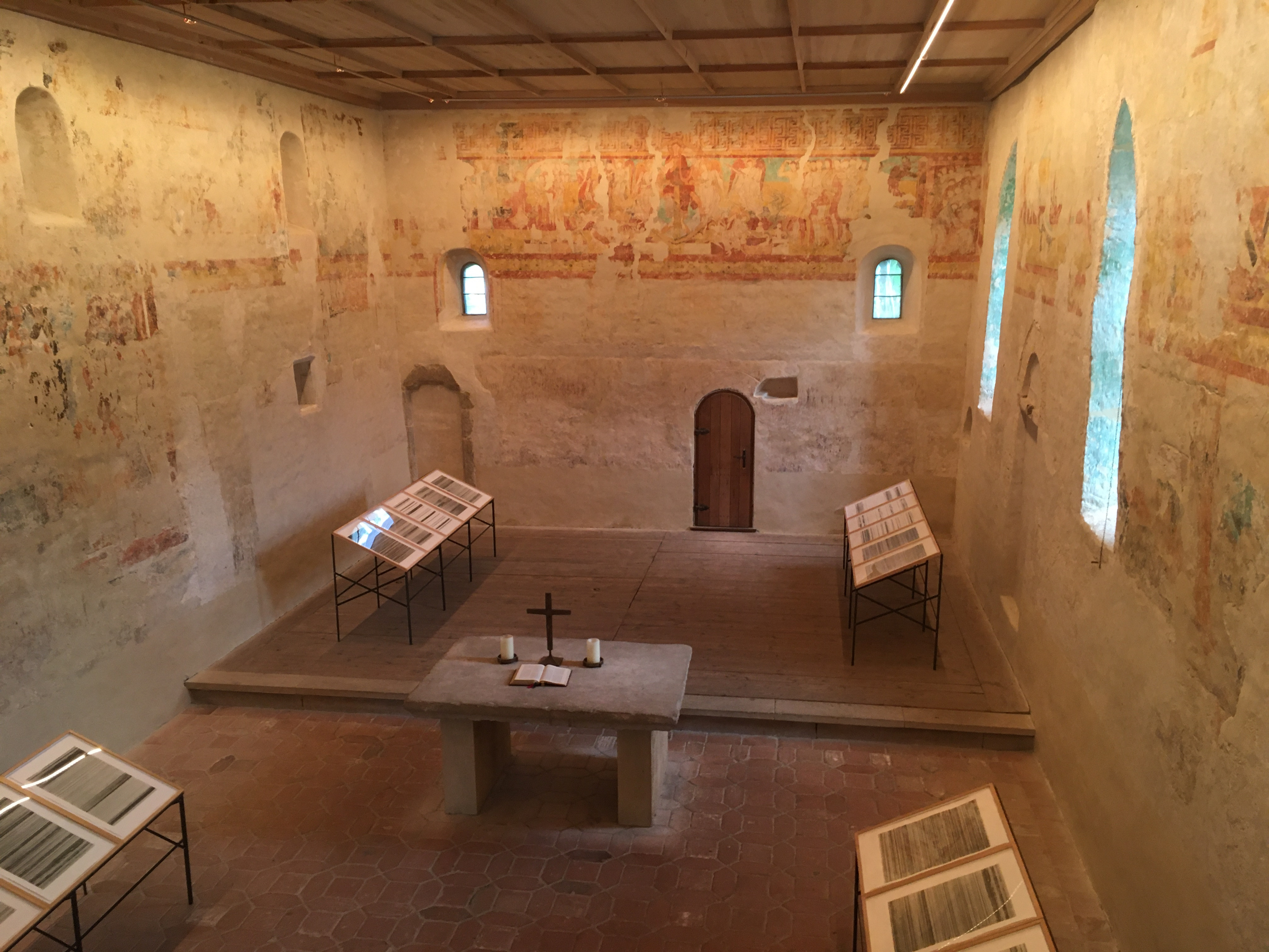 Die Kirche ist ein romanischer Saalbau aus dem 11. Jahrhundert und zeichnet sich vor allem durch die Reste der in dieser Zeit entstandenen Wandmalereien aus, die höchstwahrscheinlich von Reichenauer Malermönchen stammen. Ältere Fundamentreste aus dem 8. Jahrhundert und eine Grablege aus dem frühen 7. Jahrhundert verweisen auf eine lange Besiedlungstradition durch alemannische und dann fränkische Adlige. Seit 1892 ist die Kirche Denkmal und heute im Besitz des Landes Baden-Württemberg.