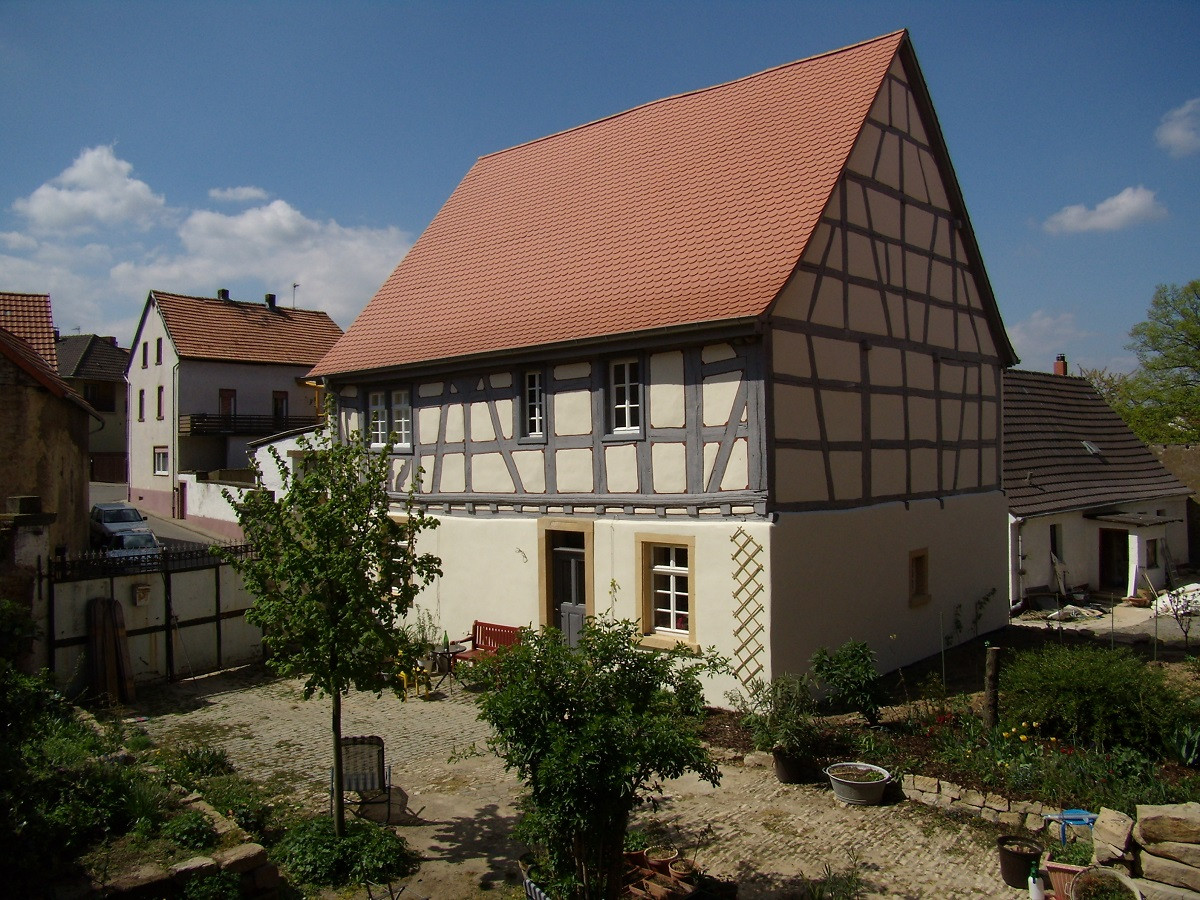 Das gut erhaltene bäuerliche Anwesen steht komplett unter Denkmalschutz und wird seit 2002 mit viel Liebe zum Detail renoviert und belebt. Zu sehen sind ein Fachwerkhaus (1720), eingegrünt im Hofgarten mit Hausbaum, und die große querstehende Natursteinscheune von 1859 mit Kuhkapelle, Tenne und den Neubauten im Strohspeicher. Hinter der Scheune befindet sich der naturnah angelegte, parkähnliche Garten mit alten Bäumen und Pflanzgarten und dem angrenzenden Bürgergarten.