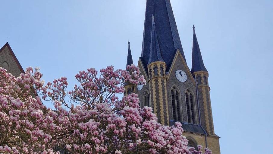Die Pfarrkirche übernahm 954 die Reliquien des Hl. Evergislus von Tongeren und war fast 600 Jahre ein bedeutender Heilig-Blut-Wallfahrtsort. 1790 wurde sie grundlegend erneuert, 1890 folgte ein Neubau im neugotischen Stil. Zwischen 1970 und 1974 erfolgten die letzte große Renovierung und Umgestaltung. Ältestes erhaltenes Ausstattungsstück ist ein Christuskorpus aus der Zeit vor 1500.