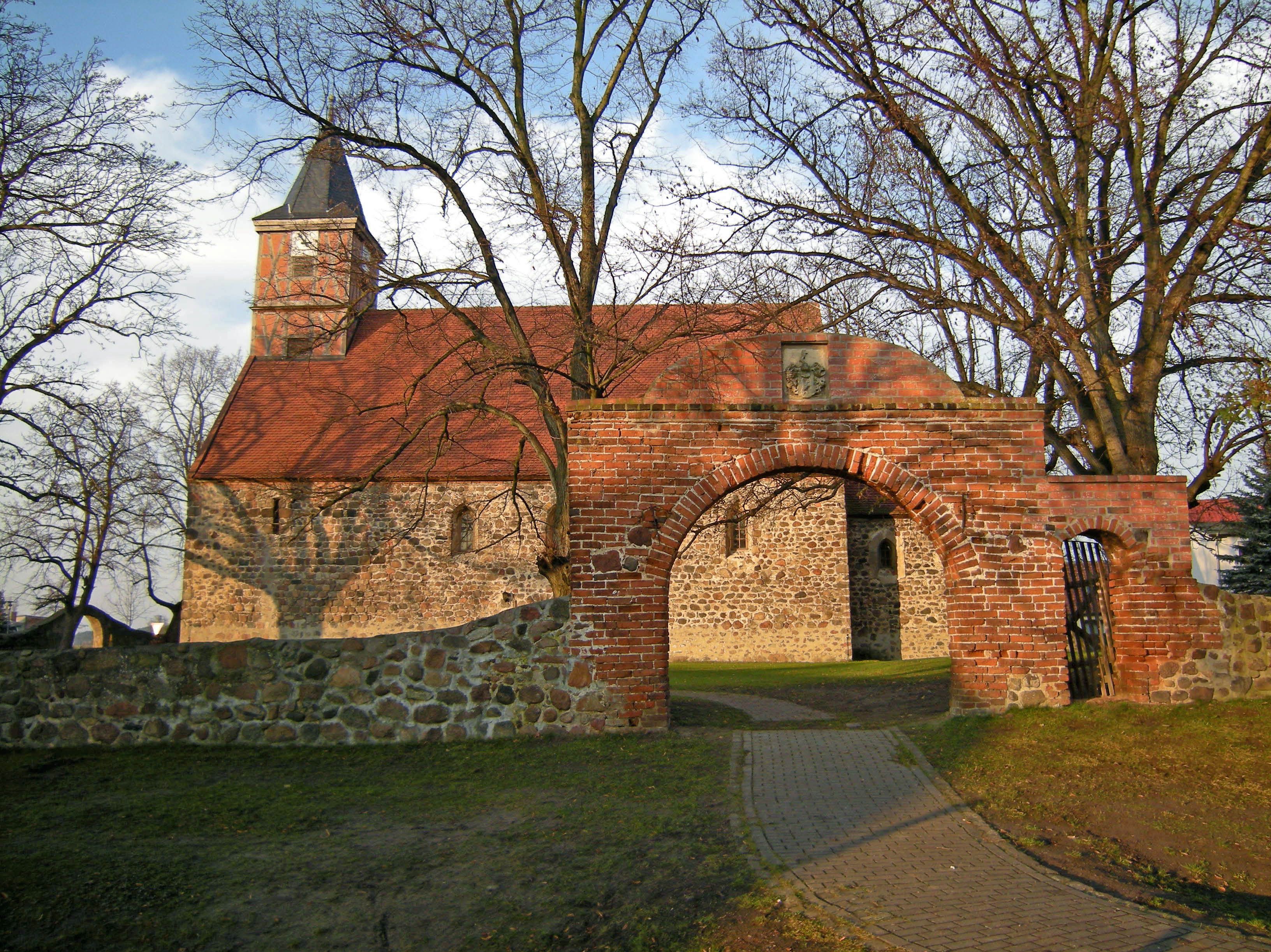 Die bauliche Substanz geht bis auf das Jahr 1150 zurück. Romanische Feldsteinkirche mit einem Altar aus der Cranach-Werkstatt und einer Ladegast-Orgel. 1989 brannte die Kirche nach Brandstiftung bis auf die Außenmauern vollständig nieder. Zehn Jahre später wurde sie wieder geweiht.