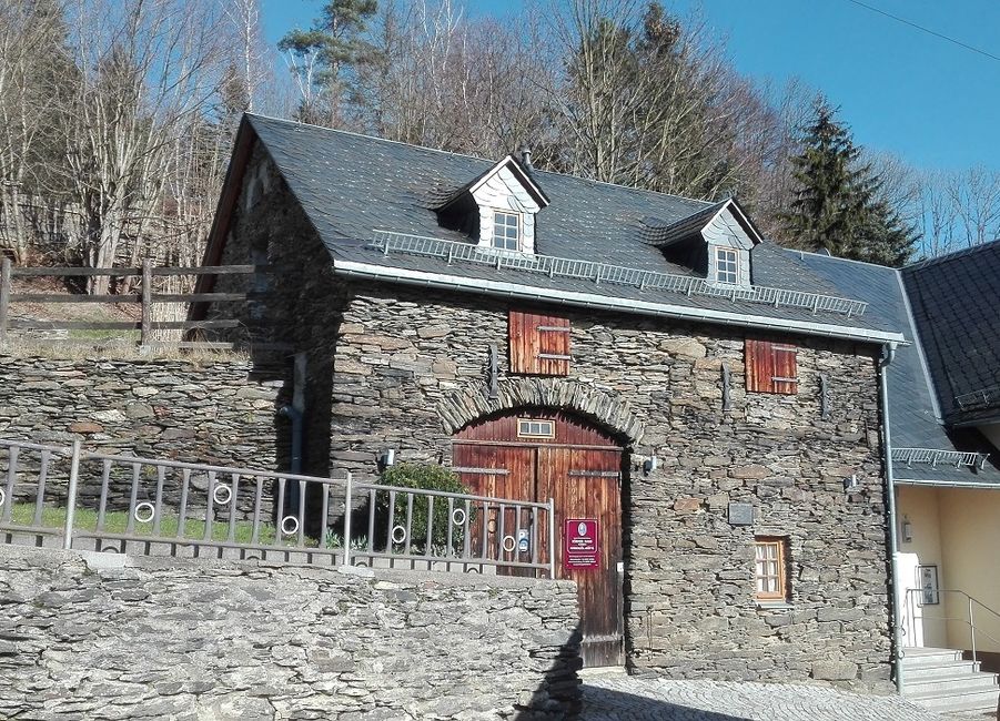Um 1730 erbaut in Trockenmauertechnik, Inneres zeigt Brennofen zur Herstellung konzentrierter Schwefelsäure (Vitriolöl) mit Keramikgefäßen. 1993-96 erfolgten Wiederaufbau und Restaurierung der Ruine.