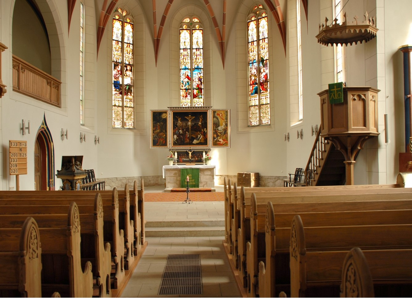 Die Kirche hat ihren Ursprung im 12. Jahrhundert. Eine Erweiterung zur spätgotischen Hallenkirche erfolgte 1518-22; eine Umgestaltung 1899/1900.