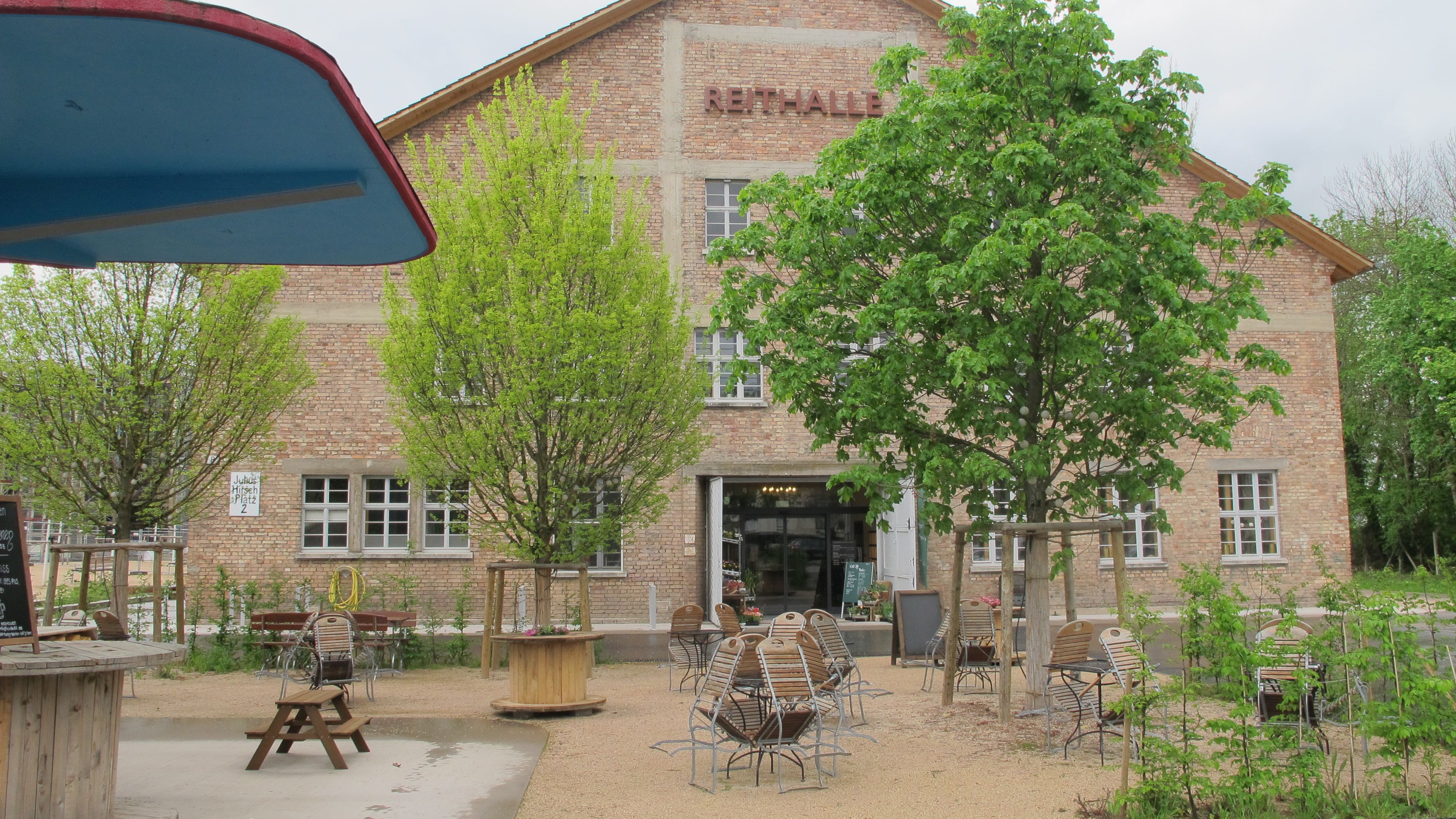 Reithalle, erbaut 1946 für die Offiziersschule des französischen Millitärs. Heute beleben eine Markthalle, eine Buchhandlung und ein Café die Reithalle.