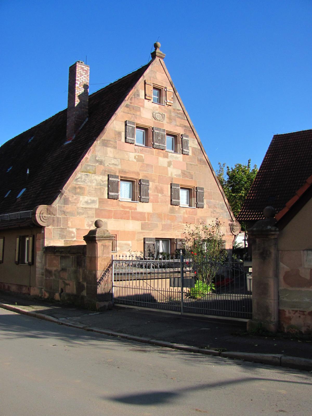 Ältestes Bauernhaus Nürnbergs von 1557 in der Großreuther Straße 98 und Hofanlage Großreuther Straße 84 mit einer der ältesten Scheunen Frankens von 1580 und einem Bauernhaus mit Volutengiebel.