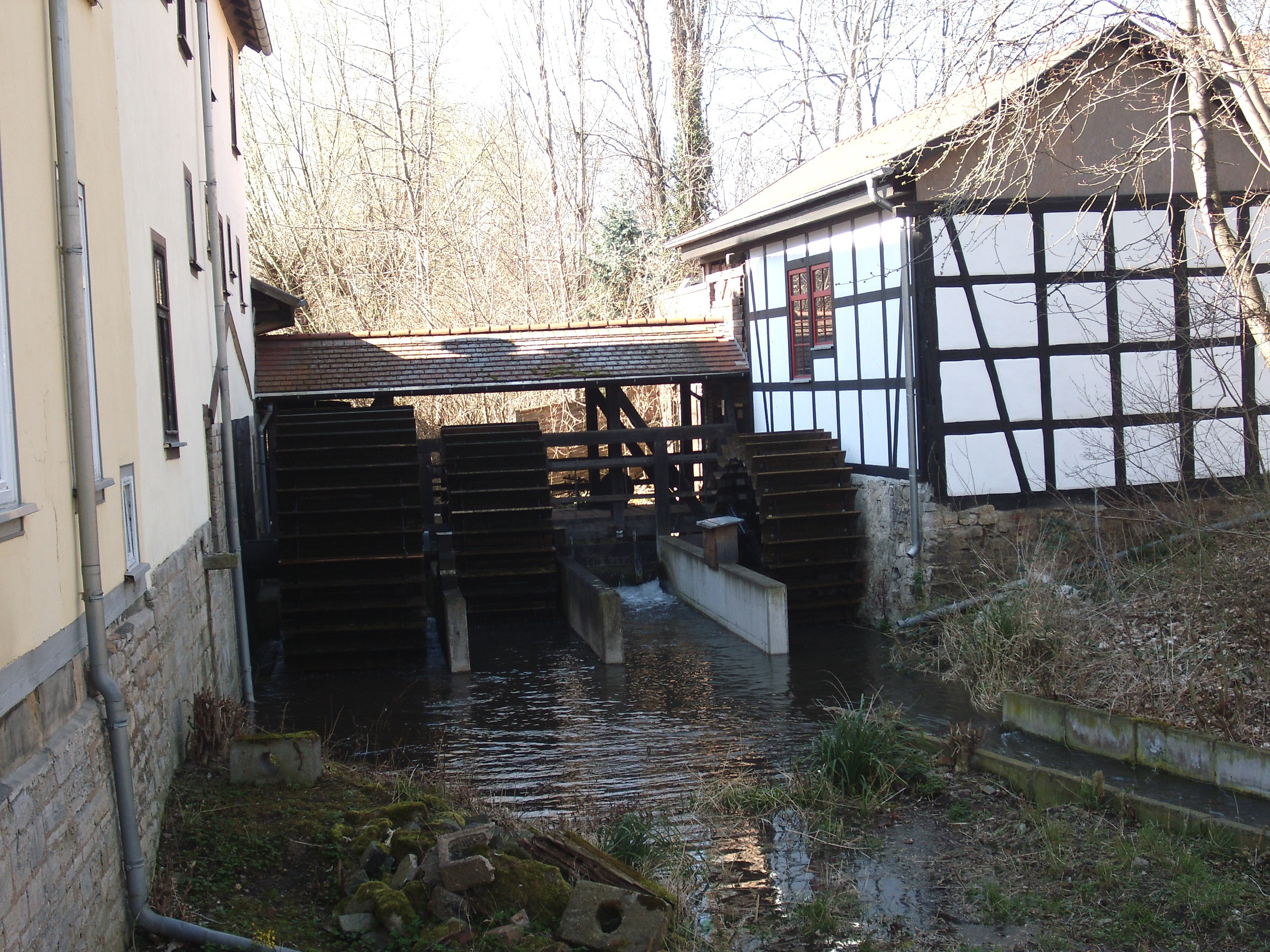 Eine erste urkundliche Erwähnung findet sich 1291. Die Technik zur Perlgraupenherstellung von ca. 1860 und drei funktionsfähige unterschlächtige Wasserräder sind noch vorhanden. Heute vermutlich die letzte betriebsbereite Perlgraupenwassermühle in Deutschland.