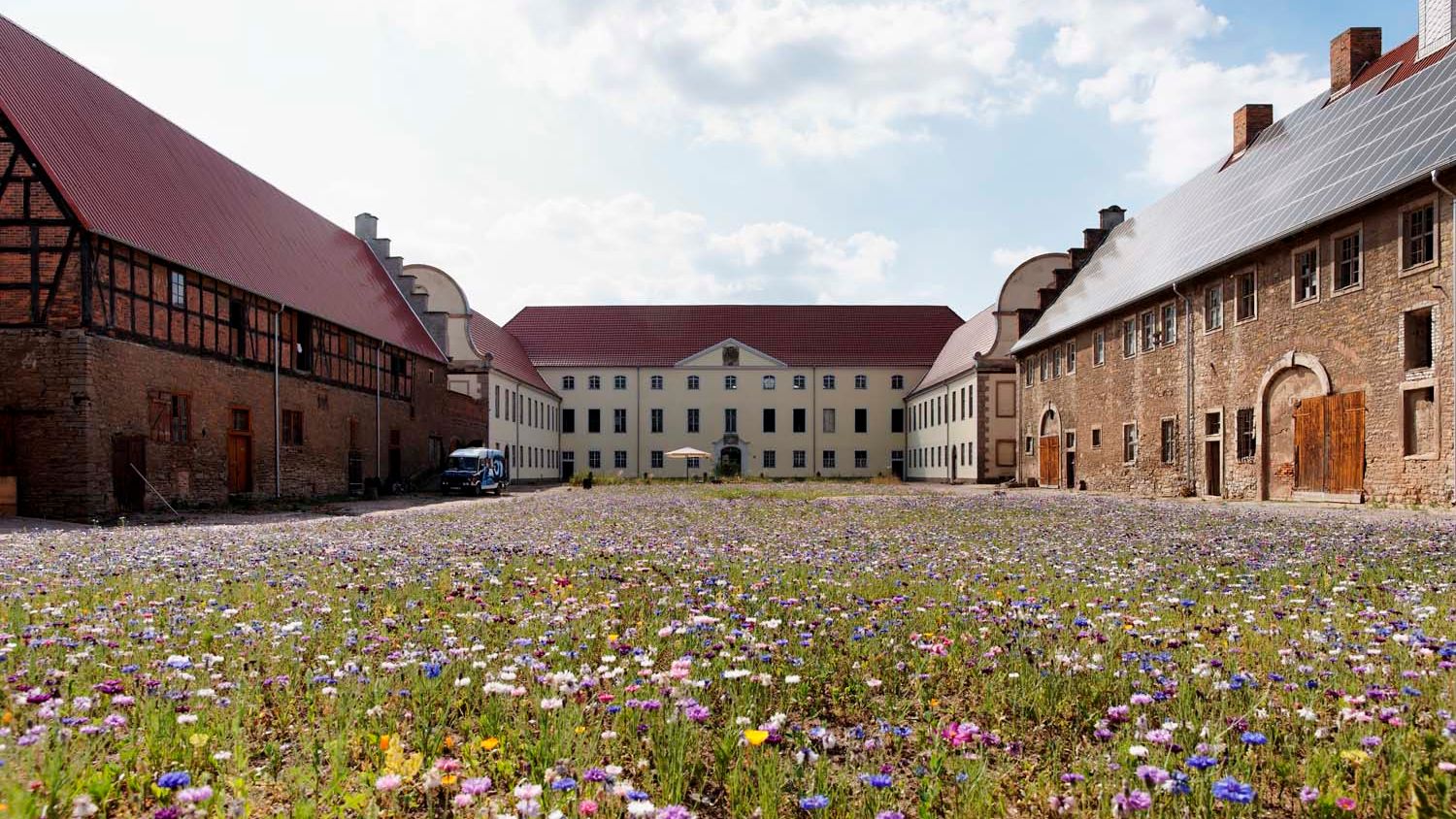 Einst Kaiserpfalz der Ottonen, dann Benediktinerinnen-Kloster St. Andreas. 992 gegründet auf königlichem Hof, 1544 zerstört, später Umbau zum Schloss. 1677 bis 1727 im Besitz der Familie zu Eltz, 1745 Altkanzleisässiges Rittergut. Die St.-Andreas-Kirche ist eine ehemalige Patronatskirche. Ein Feldsteinbau von 1765 mit doppelter Fensterreihe und ortsprägendem Dachturm mit Laterne und Welscher Haube sowie Empore und Holzkanzelaltar. Auf dem Kirchhof befinden sich barocke Grabmale.