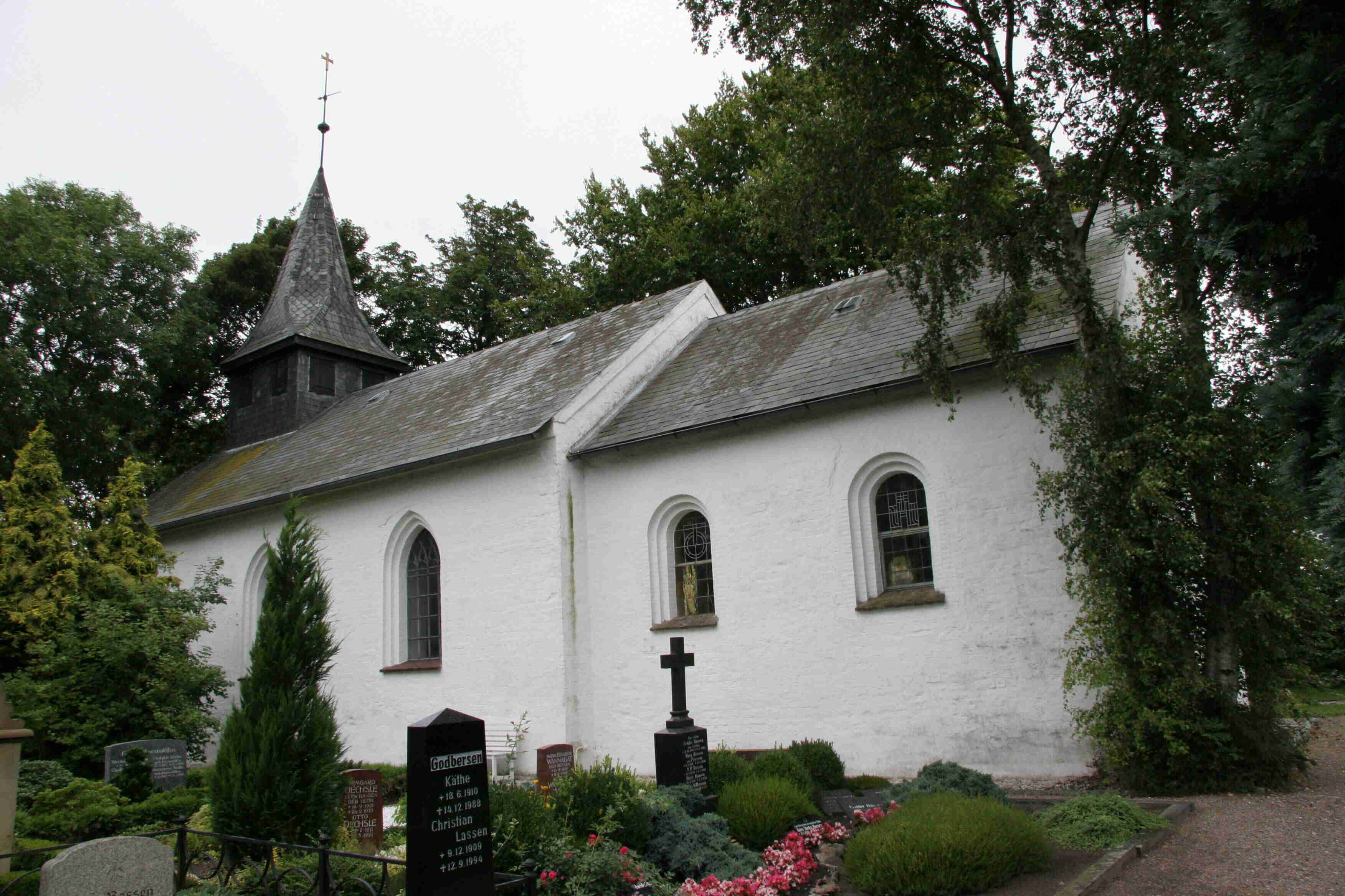 Der spätromanische Backsteinbau wurde um 1200 erbaut, Umbauten erfolgten 1875-78. Zur Ausstattung gehören eine der ältesten noch erhaltenen Glocken des Landes, der romanische Taufstein, der Altar von 1661, das frühgotische Triumphkreuz aus dem 13. Jh., die reich verzierte Renaissancekanzel von 1578 und drei große Gemälde aus der Schule der flämisch-holländischen Barockmalerei von 1670.