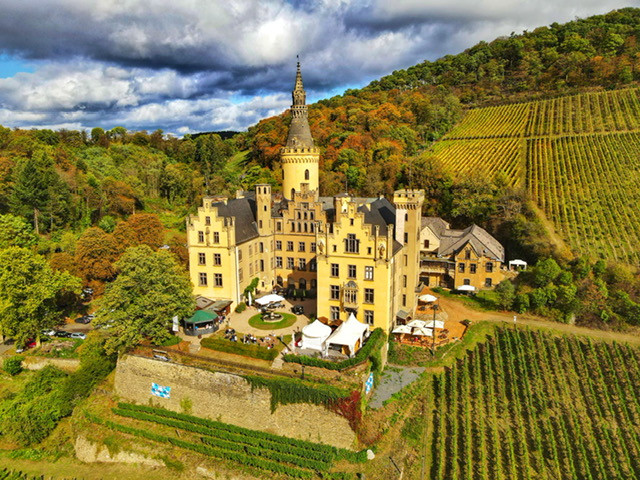 Früher auch Schloss Arienfels genannt liegt die Schlossanlage oberhalb von Bad Hönningen in Rheinland-Pfalz, die auf eine mittelalterliche Burg aus dem 13. Jahrhundert zurückgeht. Das Schloss erhielt seine heutige äußere Gestalt in der Zeit von 1849-55, in der es unter der Leitung des Kölner Dombaumeisters Ernst Friedrich Zwirner im Stil der Neugotik umfassend verändert wurde. Aufgrund seiner 365 Fenster, 52 Türen und 12 Türme erhielt es den Beinamen „Schloss des Jahres“.