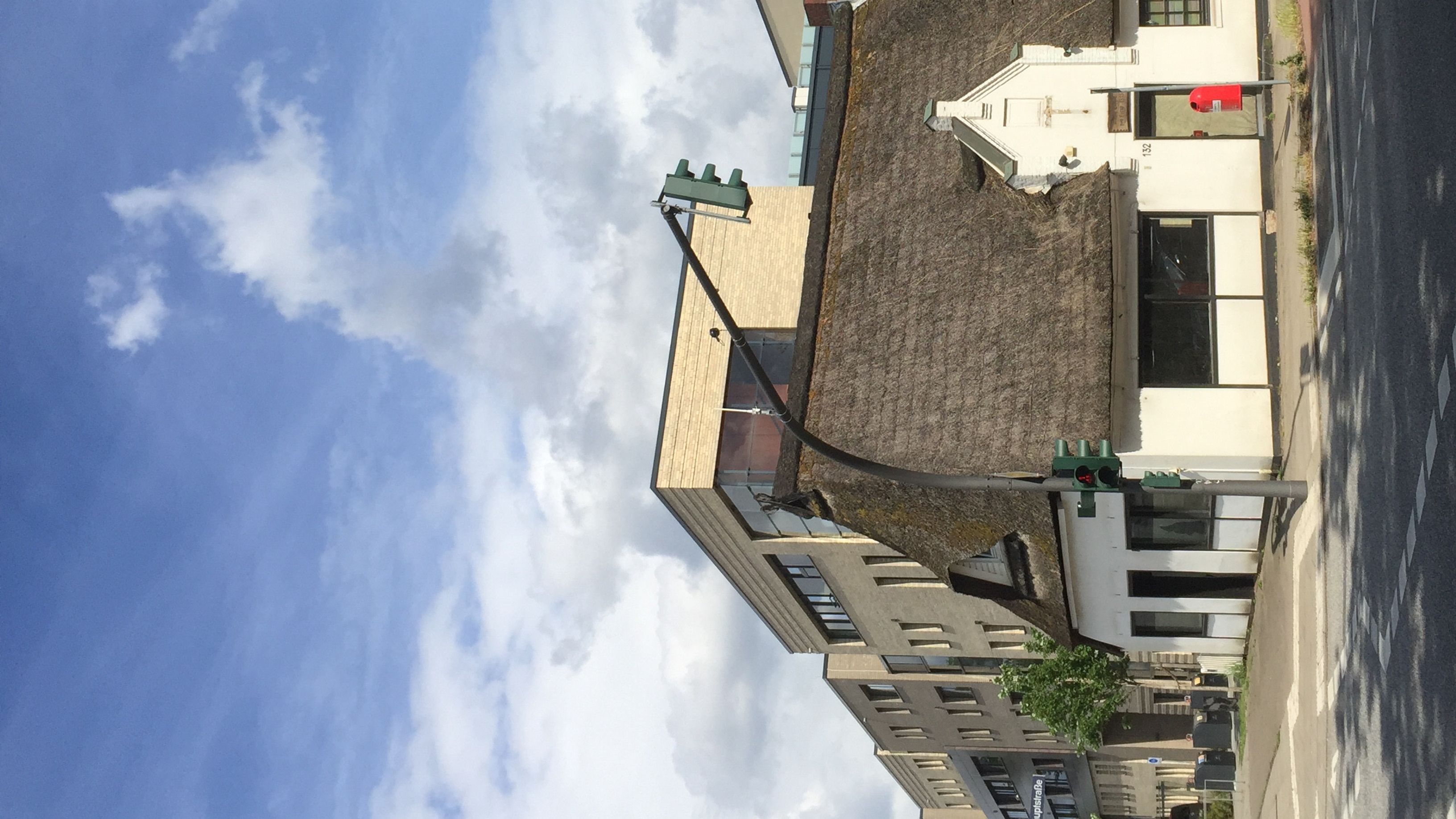 Die Initiative Schulkate, die sich für den Erhalt des Gebäudes und eine gemeinwohlorientierte Nutzung einsetzt, informiert am Tag des offenen Denkmals an einem Info-Stand vor der Schulkate im Pocket-Park.