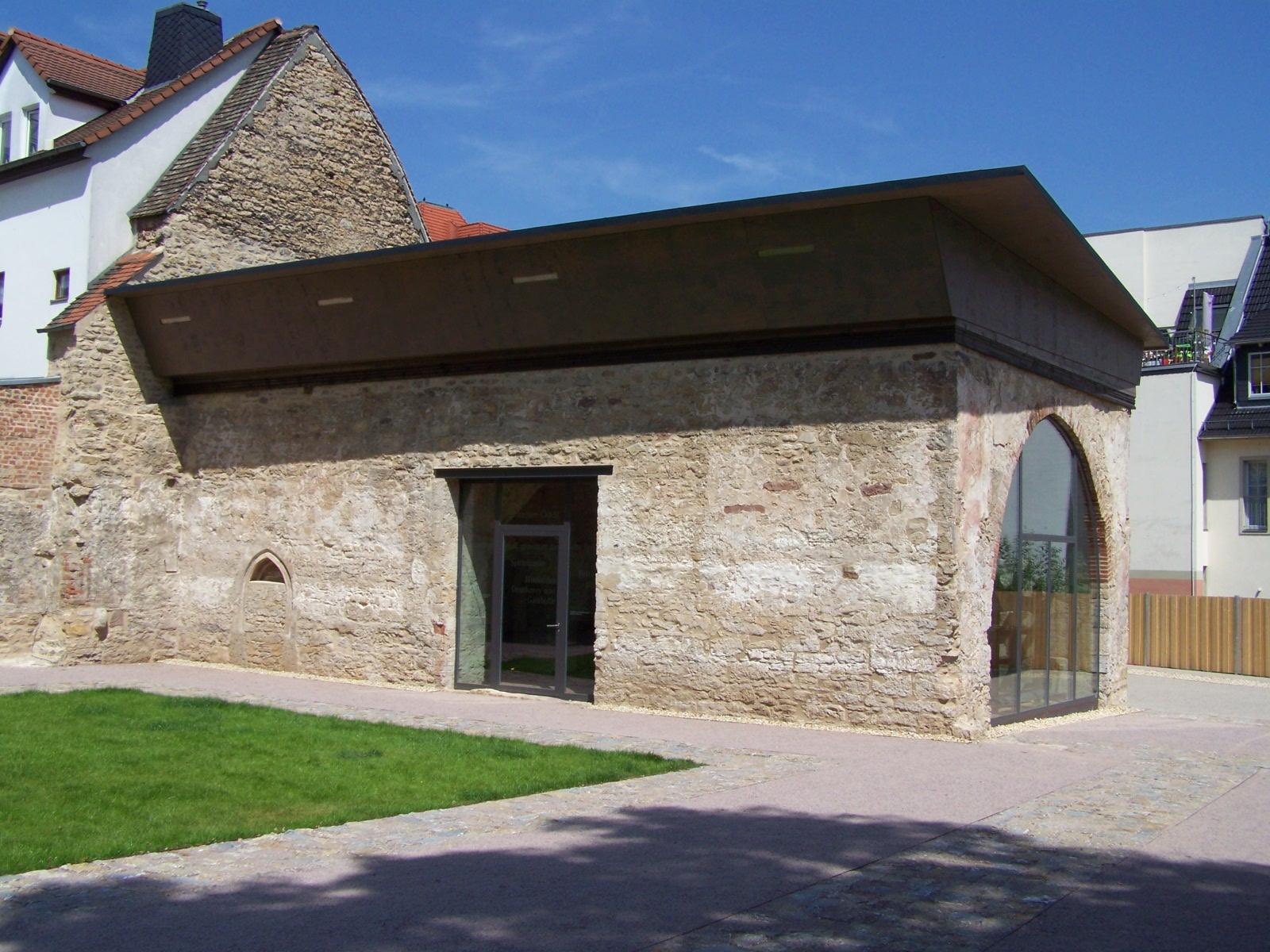 Ein 1414 errichteter Klosterbau wurde Ende des 15. Jhs. durch einen Neubau mit angeschlossener Hallenkirche ersetzt. Nach Klosterauflösung richtete man in den Räumen ab 1553 eine Buchdruckerei ein, die eine der bedeutendsten der Reformation wurde. Auf deren Niedergang im 30jährigen Krieg folgte 1669 der Umbau zum Gasthof. 2017 denkmalgerecht saniert, erfuhr das Areal um den einzigen authentischen Ort klösterlichen Lebens und der Reformation in Jena mit dem Bibliotheksbau erneut einen Umbruch.
