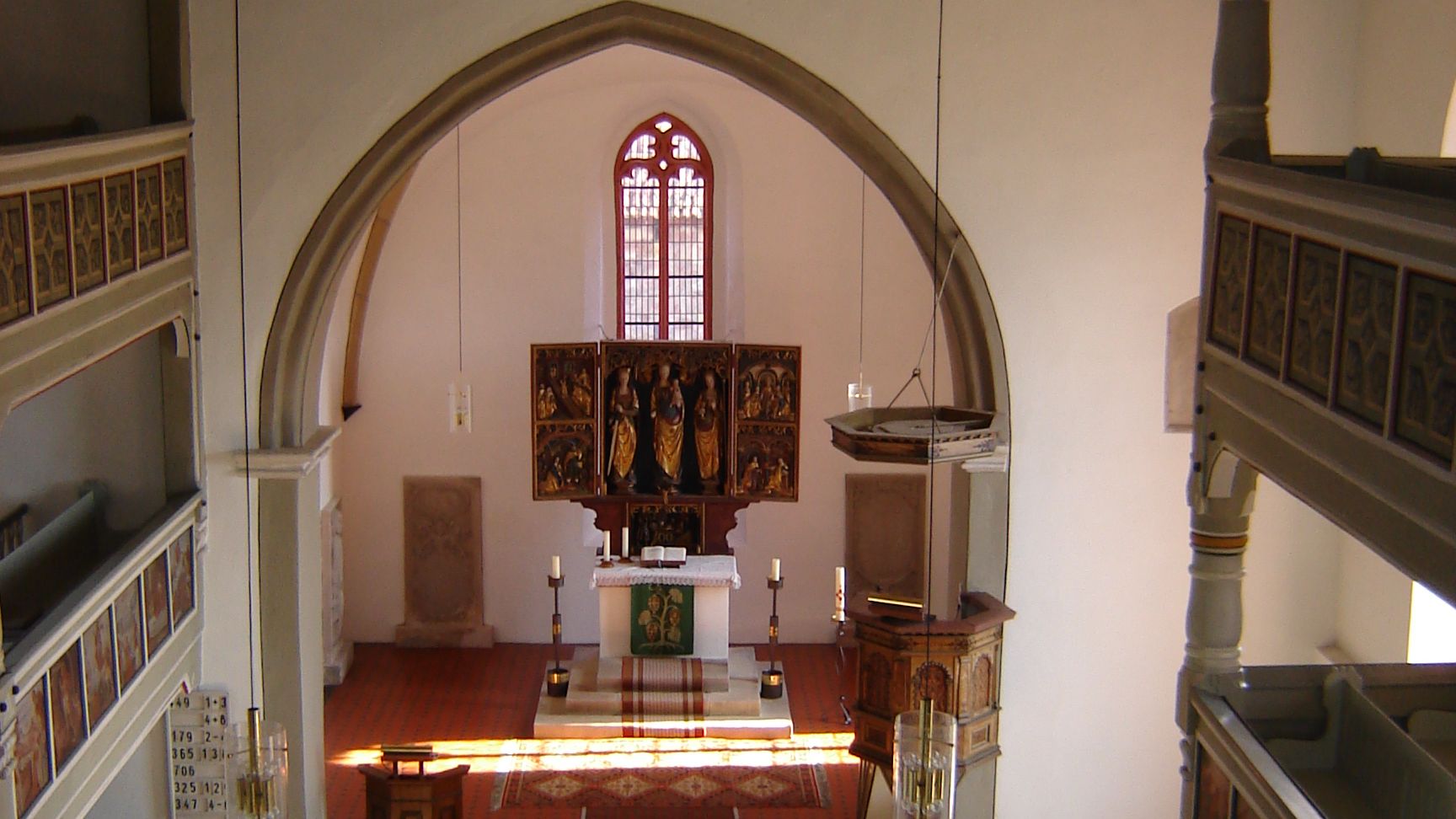 Die Kirche in ihrer heutigen Gestalt wurde 1608-1616 unter Einbeziehung des romanischen Turmunterbaus von 1220 erbau. Sie ist die ehemalige Mutterkirche der Mark Breitungen (8. Jh.). Der Flügelaltar ist von 1518, das Taufbecken aus Sandstein stammt aus dem 17. Jh. Die Emporen mit 49 Ölgemälden zeigen Szenen des Alten und Neuen Testaments.
