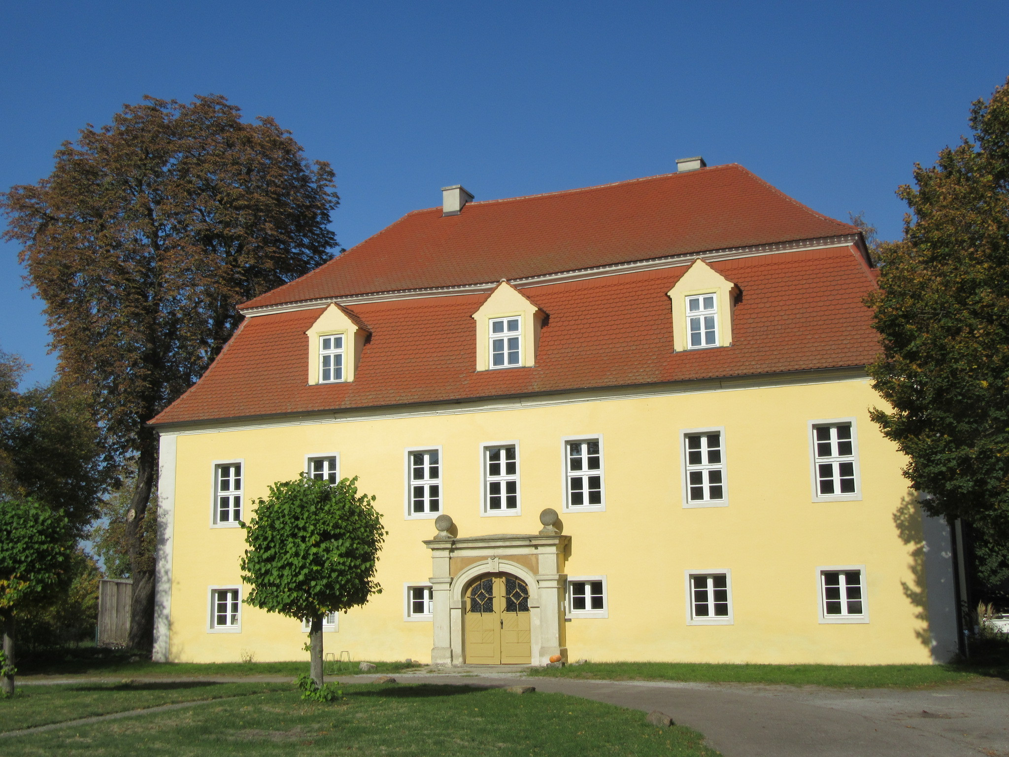1455 erstmals urkundlich erwähnt. Das barocke Gutshaus von 1727 liegt zusammen mit ehemaligen Nebengebäuden am Gutshof Lindenplatz. Außenrestaurierung des Hauptgebäudes abgeschlossen. Mit Unterstützung der Deutschen Stiftung Denkmalschutz wurde barocke Eingangshalle und Biedermeiersalons der Beletage restauriert. Das Gut wird für Trauungen, Veranstaltungen und vom Projektträger ARENUM e.V. im Bereich Umwelttechnologien und nukleare Sicherheit genutzt. Im Nebengebäude KITA "Schlossgeister".