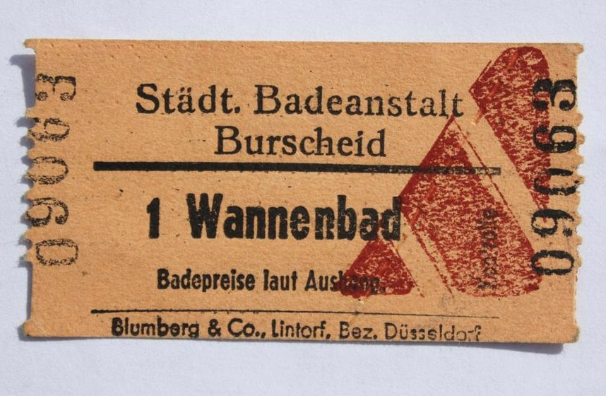 1913/14 errichtet als Badehaus mit Wannen- und Brausebädern, spätere Erweiterung mit Außenschwimmbecken. Schließung des Badehauses 1976 und des Freibads 1985. 1989-2005 als Asylberwerber-/innenheim, später als städtisches Möbellager genutzt. Renovierung 2008 zum Kulturhaus, heute unter dem Namen „KulturBadehausBurscheid“ beliebter Veranstaltungsort. Ganz aktuell in 2022/23 denkmalgerechte Restaurierung der historischen Fenster.