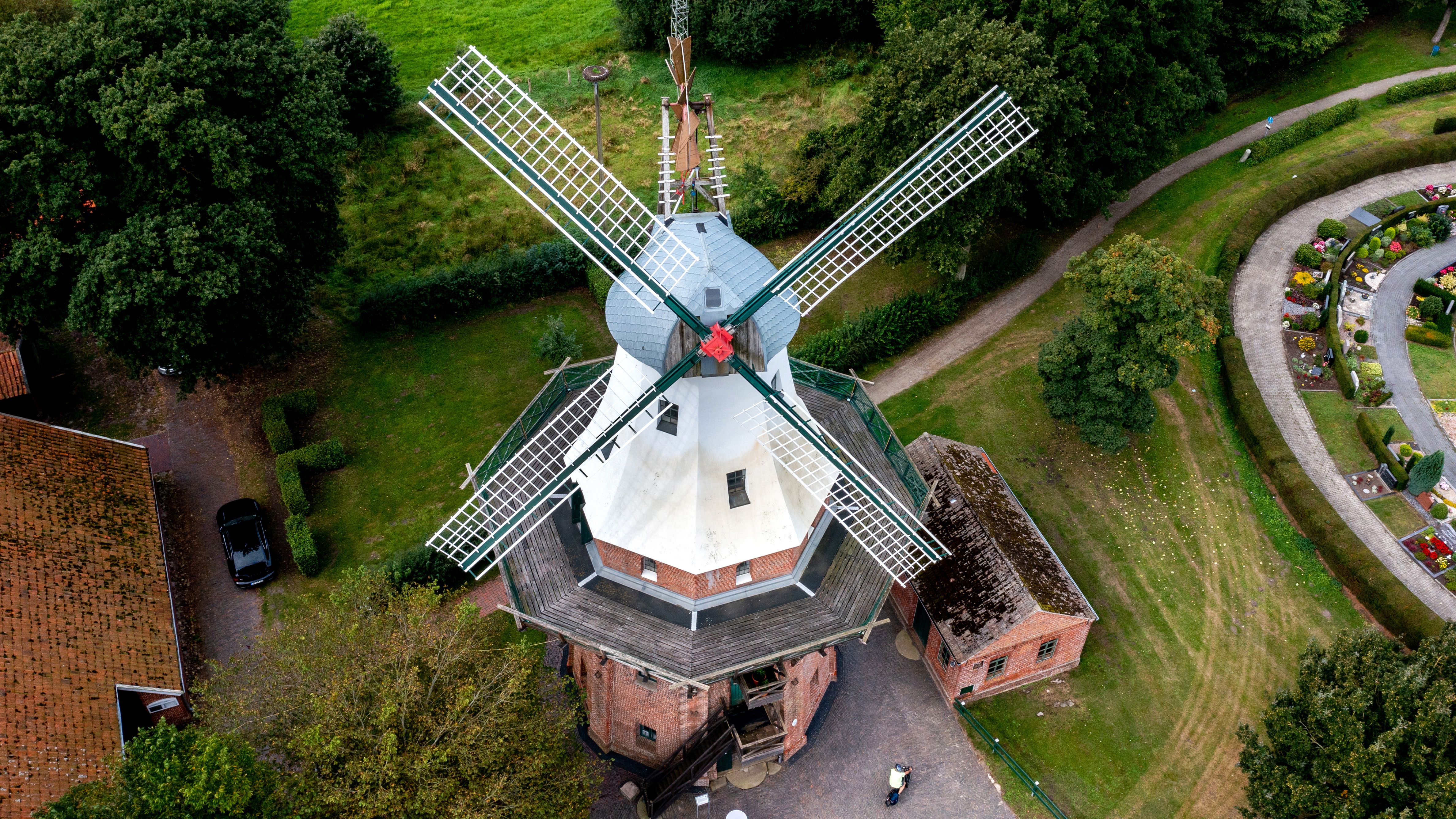 Dreistöckiger Galerieholländer von 1892. Gut erhaltene Technik mit Mahlgängen, Sackaufzug und Ölschlag sowie Maschinenhaus. Die technischen Anlagen, Zahnräder und Wellen, dokumentieren den Übergang von reinen Holzkonstruktionen zu Werkstoffen aus Schmiedeeisen bzw. Eisenguss.