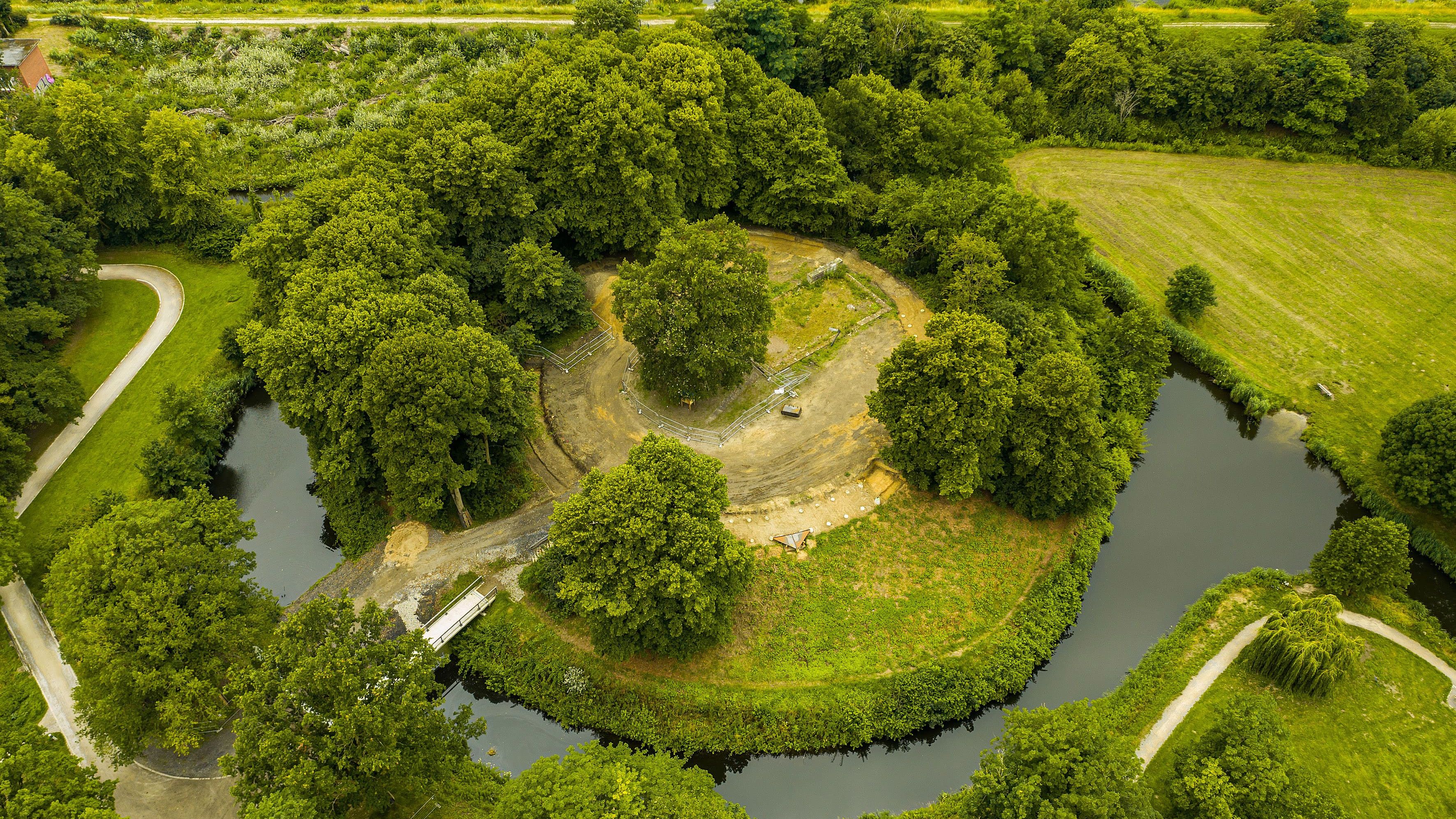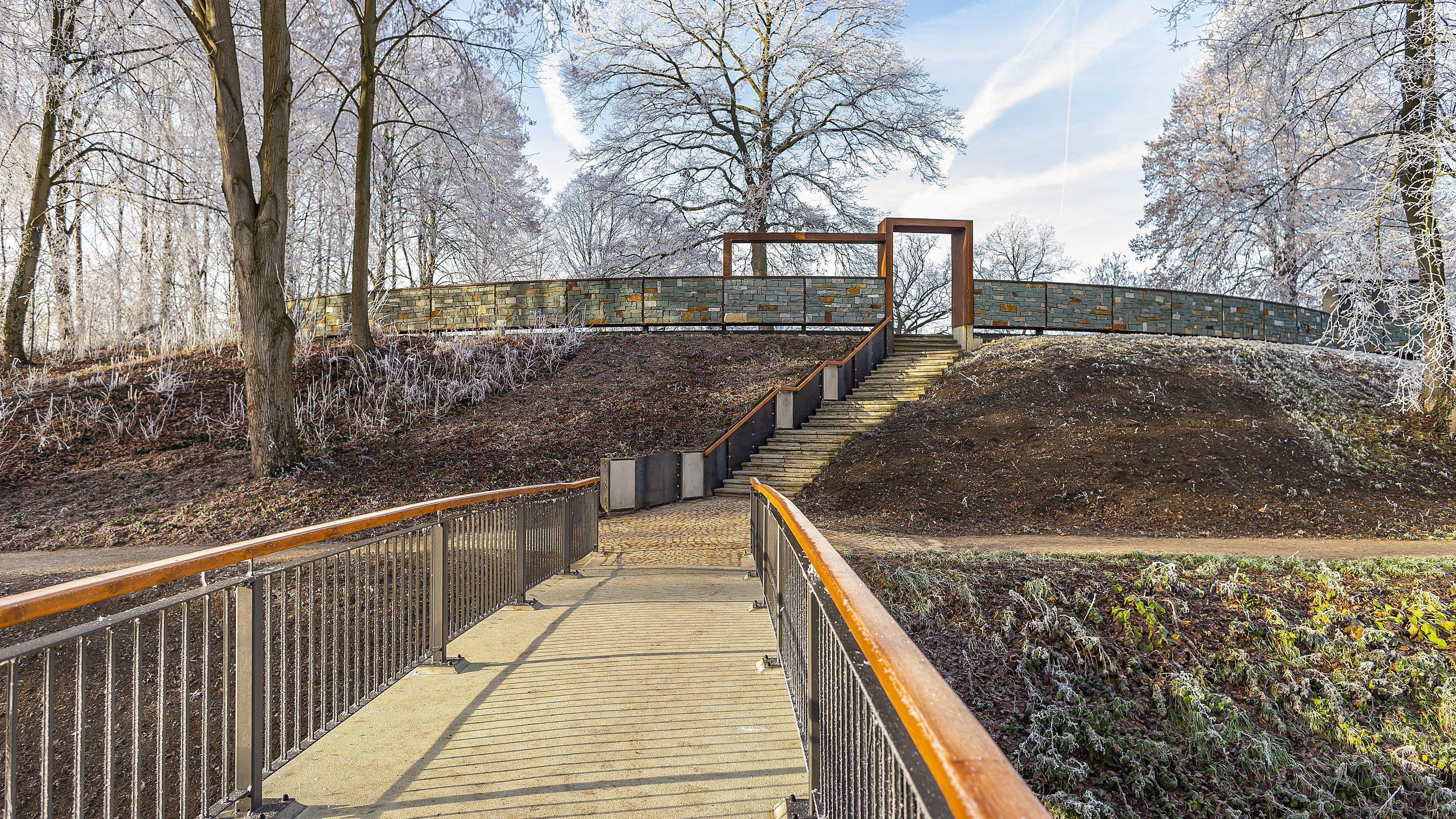 Motte mit Gräftenring des Burgplatzes der ehemaligen Turmhügelburg des Hauses Mark. Seit spätestens 1198 im Besitz der Grafen von Berg-Altena. Ehemaliger Sitz des Grafen Adolf von der Mark, dem Begründer der 1226 gegründeten Stadt Hamm. Gegen Ende des 18. Jhs. wurde die Burg infolge von Baufälligkeit abgebrochen und als Steinbruch für den Bau der Kaserne in Hamm genutzt. Die Erdwerke sind als Bodendenkmal sehr gut erhalten und zeugen von der einstigen Größe und Bedeutung der Anlage.