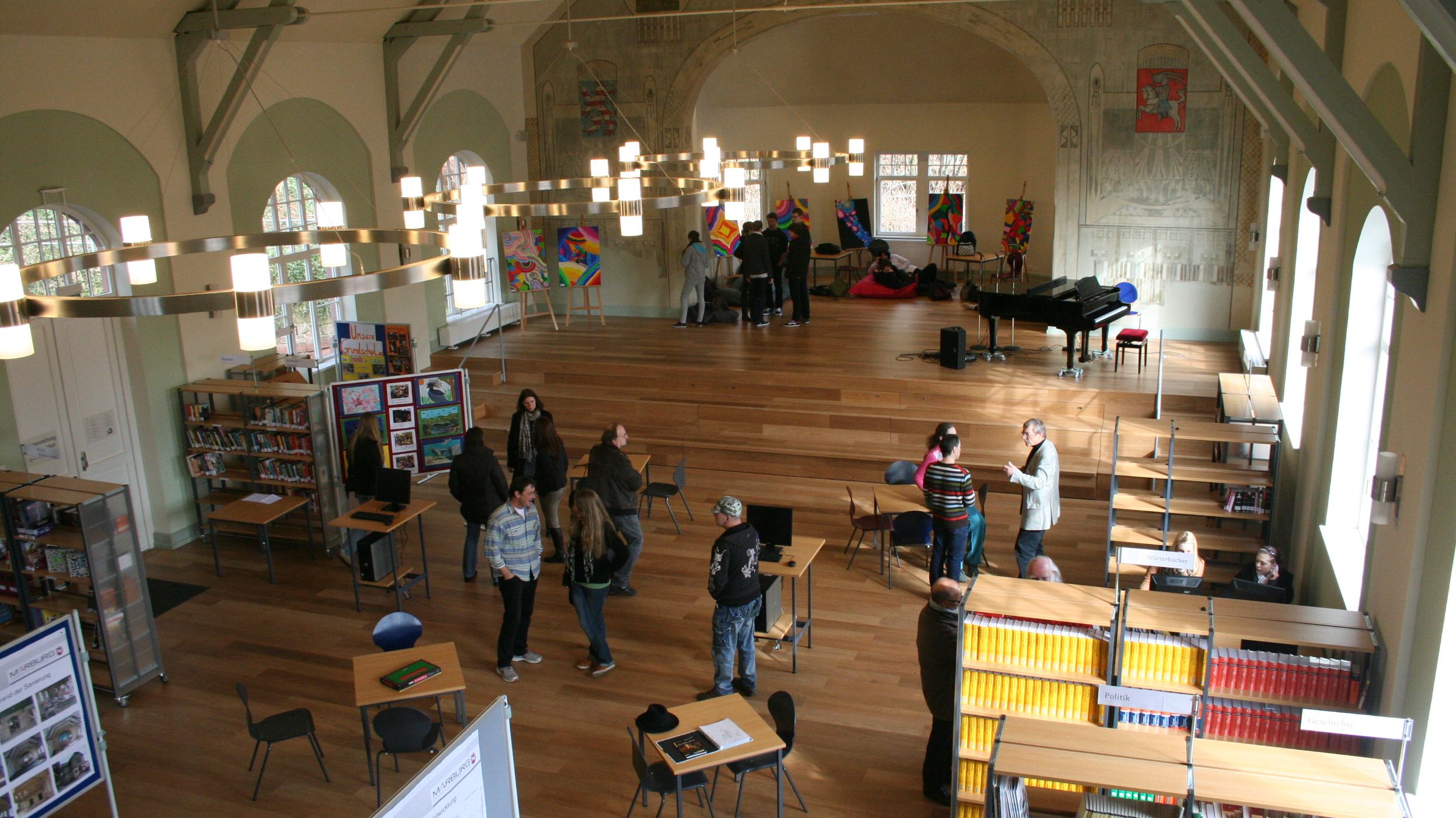 Turn- und Festsaal. Sanierung und Restaurierung von bauzeitlichen Farbbefunden. Das Gebäude ist datiert auf 1903. Erstbesitzer waren ein Musik- und Turnverein. In den folgenden Jahren hatte es unterschiedliche Nutzungen, vielen Marburgern ist es noch als Tanzsaal bekannt. Das kurz nach der Fertigstellung angebrachte Wandgemälde war lange Jahre überstrichen und wurde erst bei der Sanierung im Jahre 2012 wieder freigelegt. Heute befindet sich hier die Mediathek der Emil-von-Behring-Schule.