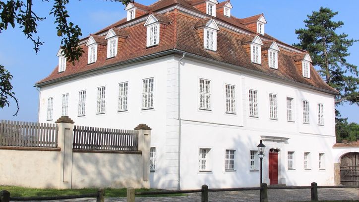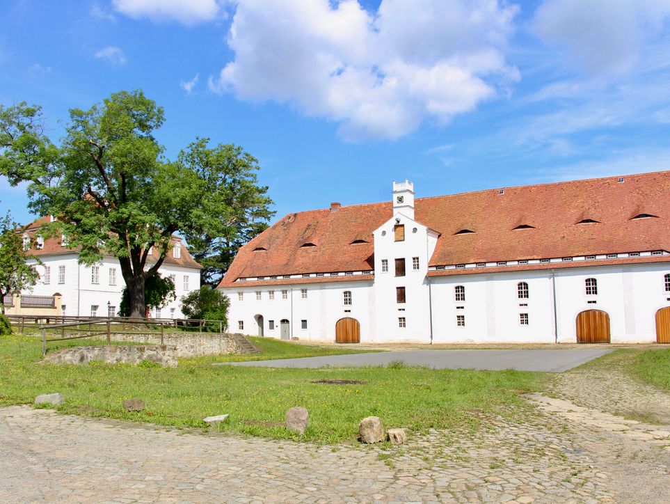 Gut mit barockem Herrenhaus des Grafen Nikolaus Ludwig von Zinzendorf (1700-1760). Es ist das Urbild des Herrnhuter Barock. Seit 1975 verfiel es. Der Freundeskreis erwarb 2001 das Gutsgelände und sanierte das verfallene Herrenhaus 2002-12. Das historische Stall- und Speichergebäude von 1800 wurde saniert und wird seit 2017 als „Kulturspeicher“ genutzt. 2022 begann die Sanierung der ehemaligen Hofscheune. Seit 2024 gehört das Schloss zum UNESCO Welterbe 'Siedlungen der Herrnhuter Brüdergemeine'