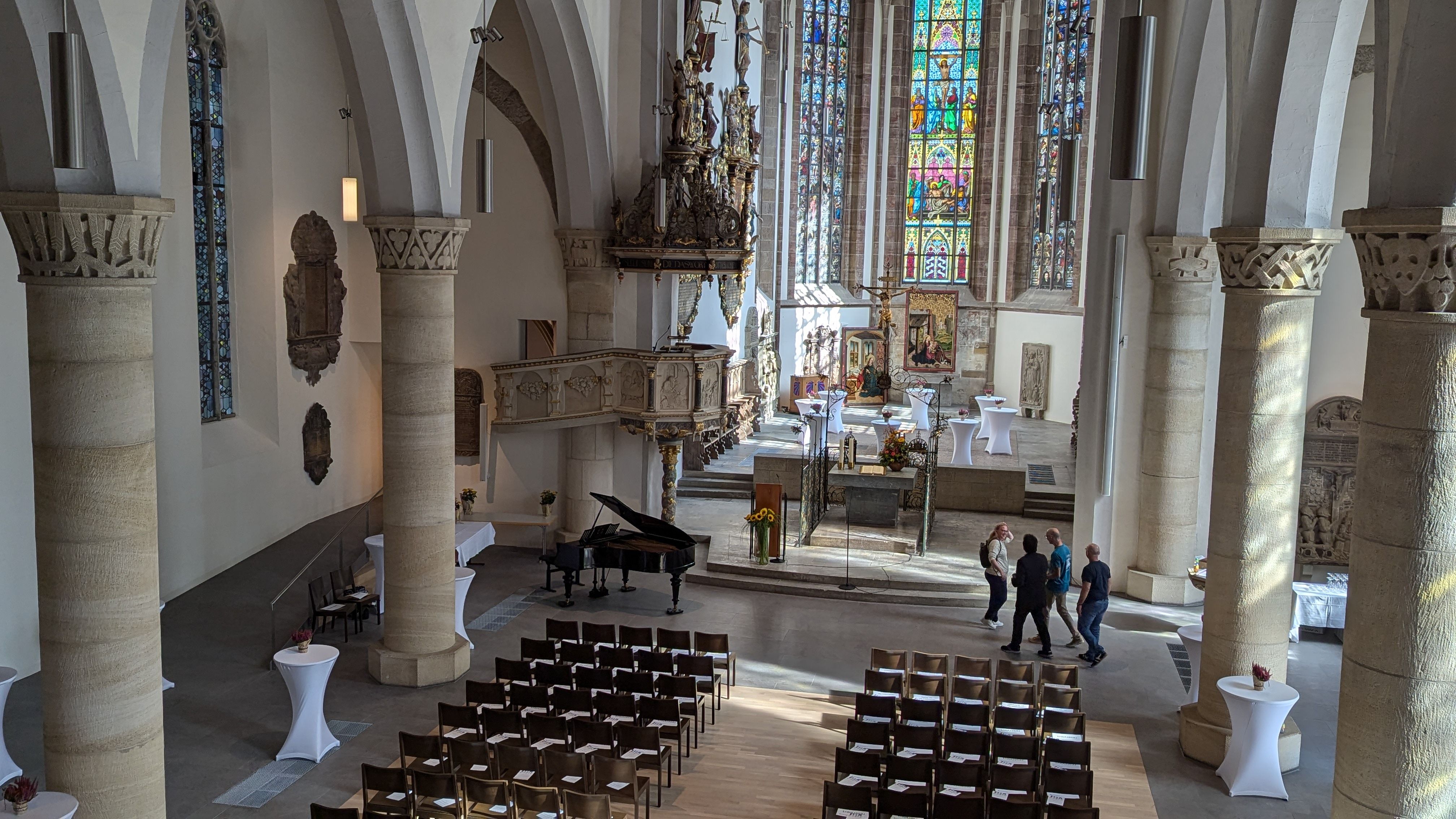 Nach dem Gottesdienst um 10:30 Uhr gibt es die Möglichkeit zur Besteigung des Kirchturms, den man einzeln oder in kleinen Gruppen besteigen kann. Eingang in den Turm seit der Innenrenovierung von der Nordseite her! Am Abend dieses Tages laden wir um 19:00 Uhr herzlich ein zum letzten Mal „Kloster auf Zeit“ als Abendabschluss im Raum der Stille in der Martinskirche.
