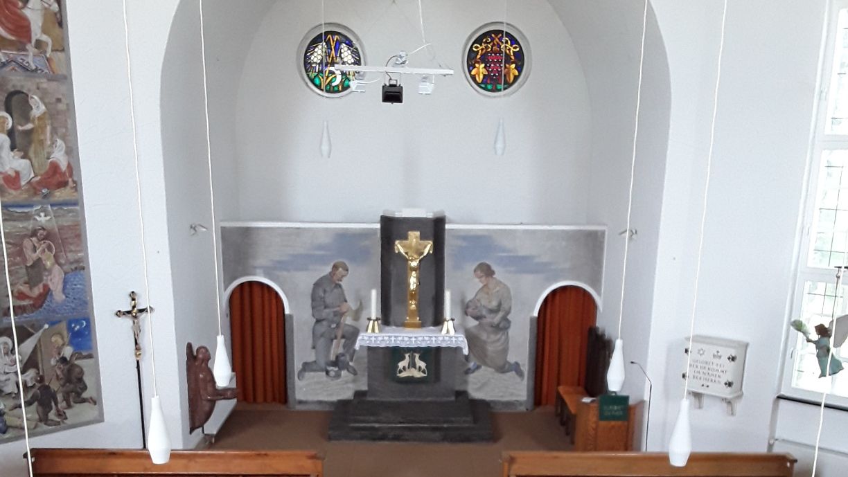 1926 wurde der Rundbau geweiht. Die Innenausmalung wurde von Möhnckemeyer und Mönckemeyer-Corty, Dresden, ausgeführt. Im Innern findet sich eine Jehmlich-Orgel.