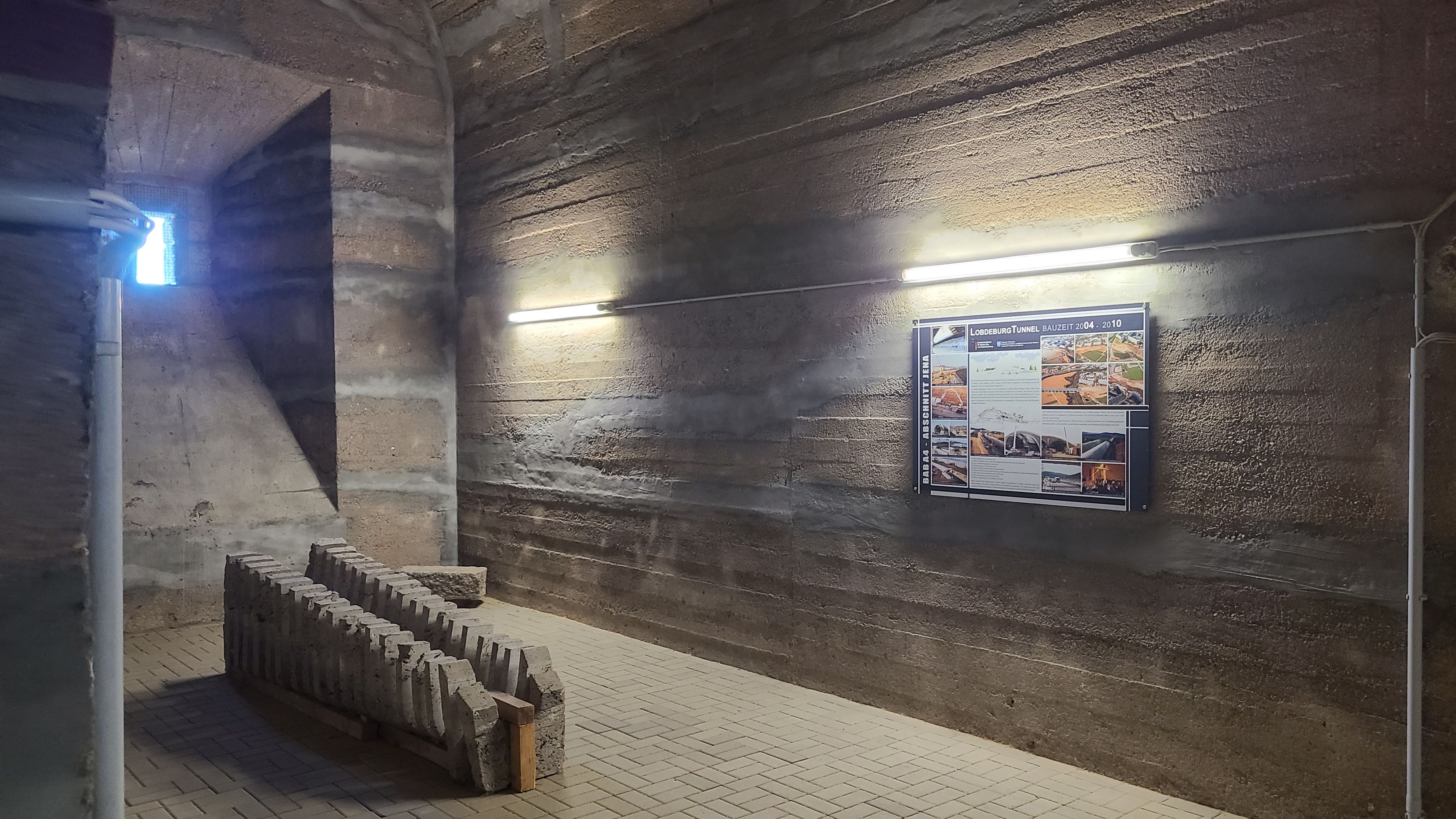 Dauerausstellung im Inneren der Saaletalbrücke. Es gibt stündlich eine Präsentation zur Geschichte und der Instandsetzung der Alten Saaletalbrücke und rum um den Autobahnbau.