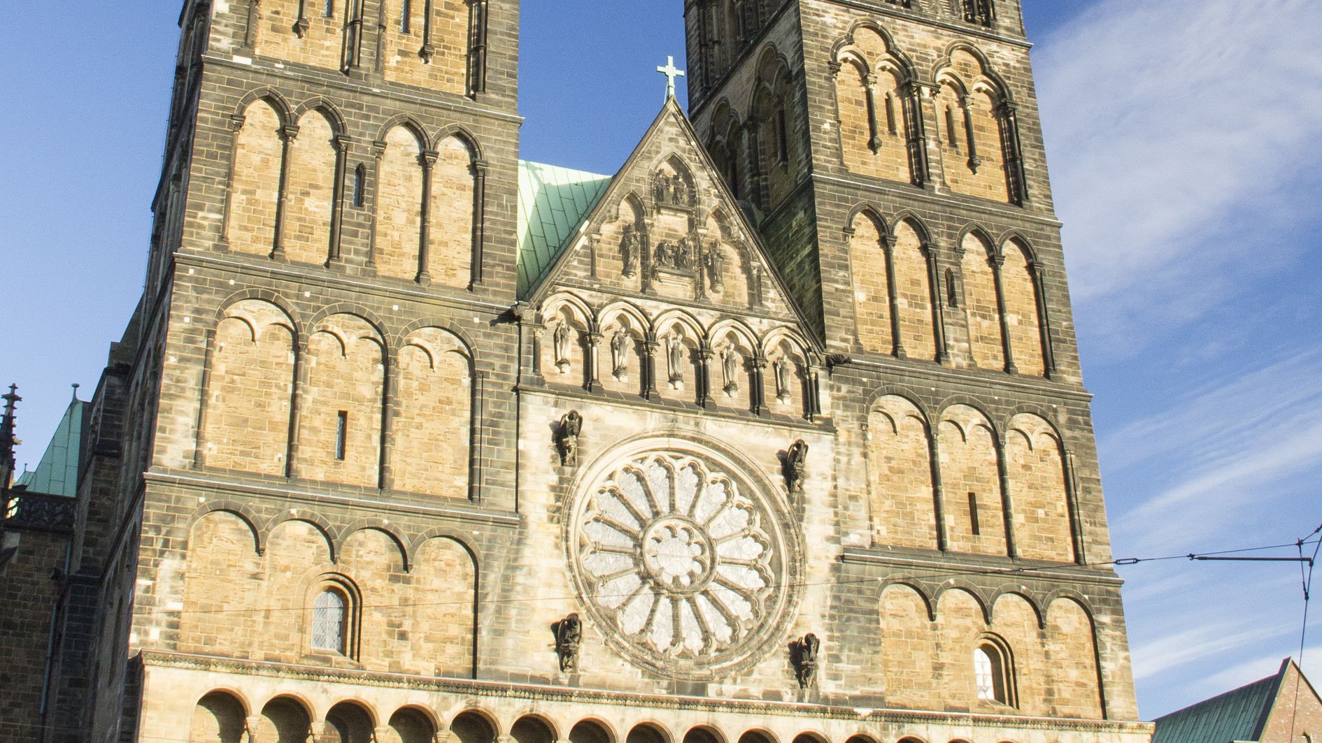 Erster Bremer Dom 789 durch Bischof Willehad geweiht; heutiger Bau im Kern auf das 11. und 12. Jh. zurückgehend, historisierende Zweiturmfront und weitgehend erneuerte Fassaden von 1888-1901, kräftig bunte historistische Ausmalung von H. Schaper.