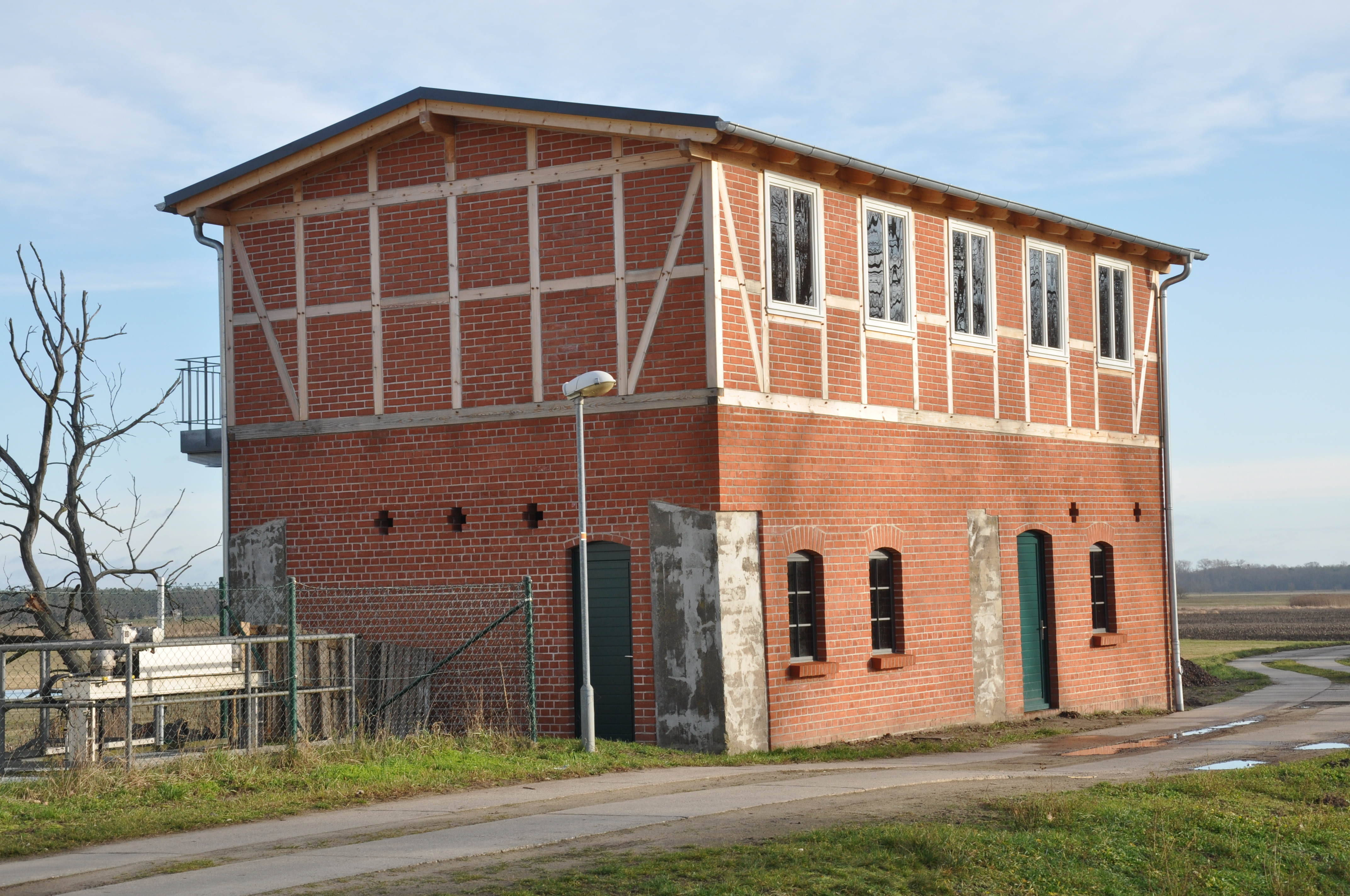 1900 als Schöpfwerk zur Entwässerung von Ackerflächen und zum Hochwasserschutz im Deichdamm als eingeschossiges Fachwerkgebäude erbaut. Einzigartige Elektro-Antriebstechnik von 1926 der Firma Cyclop teilweise noch erhalten, deshalb 1992 in die Denkmalliste aufgenommen. Der 2011 gegründete Förderverein hat die Anlage mit Fördermitteln und Eigenleistungen saniert und betreibt ein lebendiges Denkmal mit Ausstellungen und Veranstaltungen.