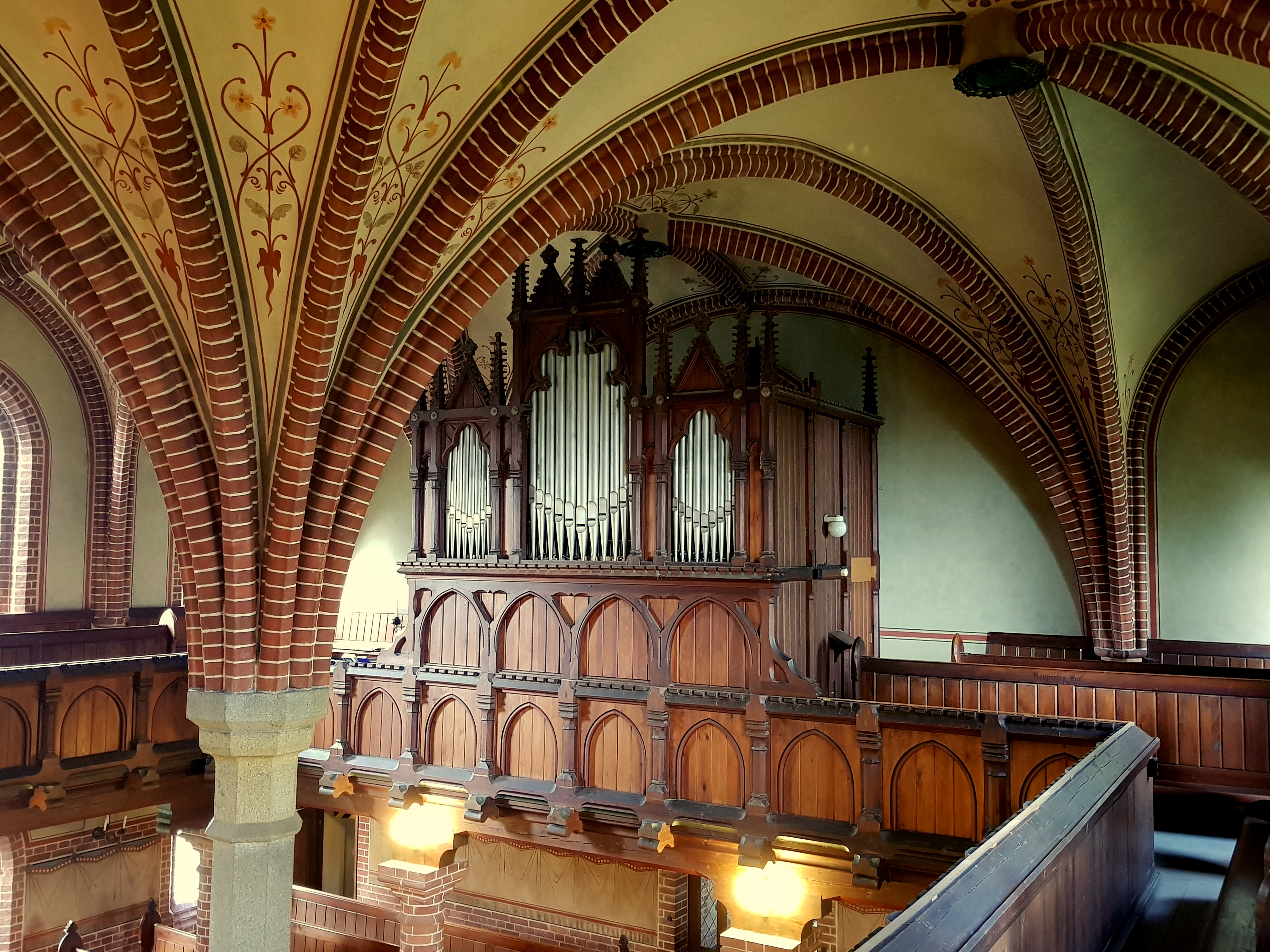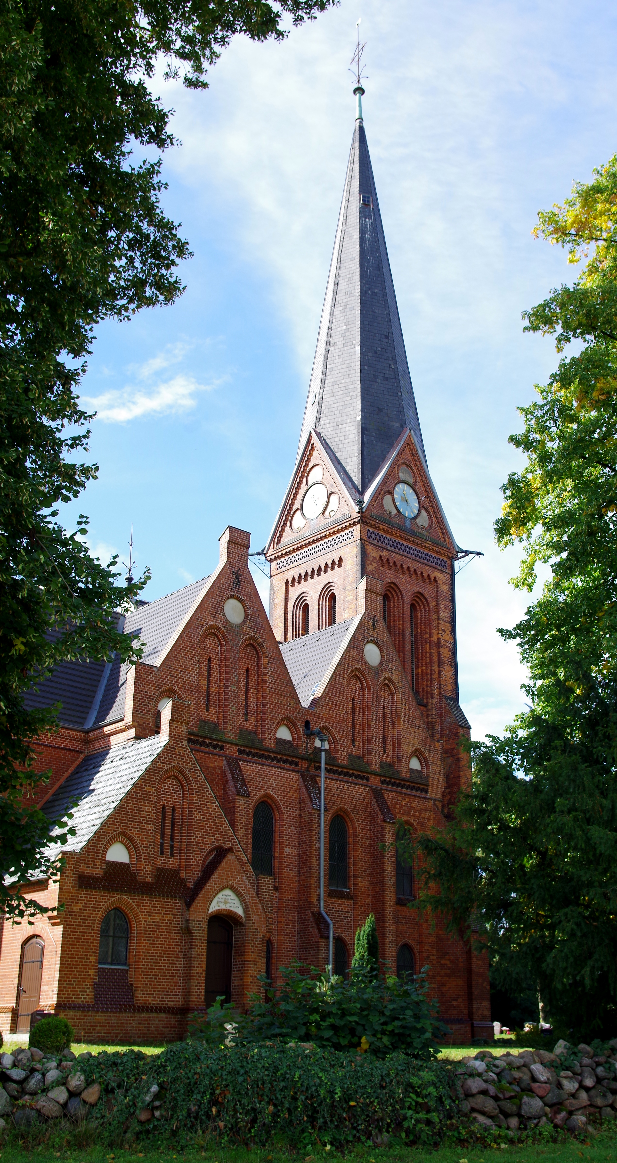 Die Dorfkirche Gnevsdorf, errichtet 1895–1897 nach Plänen des bekannten neugotischen Architekten Gotthilf Ludwig Möckel, besticht durch die Backsteinarchitektur und den 55 Meter hohen Turm mit markanter Schieferdeckung. Im Inneren ruht das fast quadratische Kirchenschiff auf einem zentralen Pfeiler, der zwölf Gewölberippen sternförmig trägt. Erhalten sind originale Ausstattungsstücke. Seit 2013 wird das Ensemble schrittweise saniert - getragen vom Engagement des 2008 gegründeten Fördervereins.