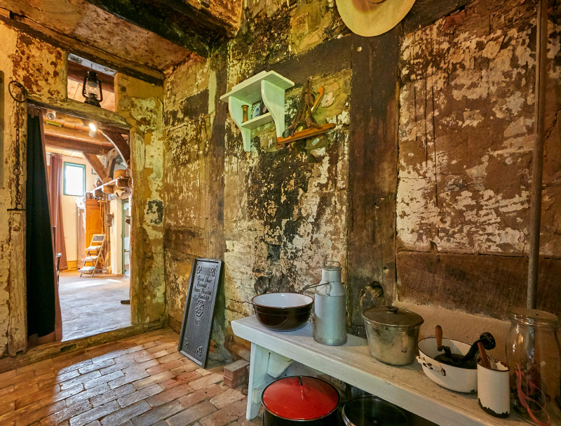 Letztes erhaltenes Küchennischenhaus aus dieser Region von 1768 und 1842. Die originale Raumfarbfassung ist vor allem im Bereich des Fletts sehr gut erhalten. Auch die Wandfarbfassungen sind seit dem späten 19. Jh. weitgehend bewahrt geblieben.