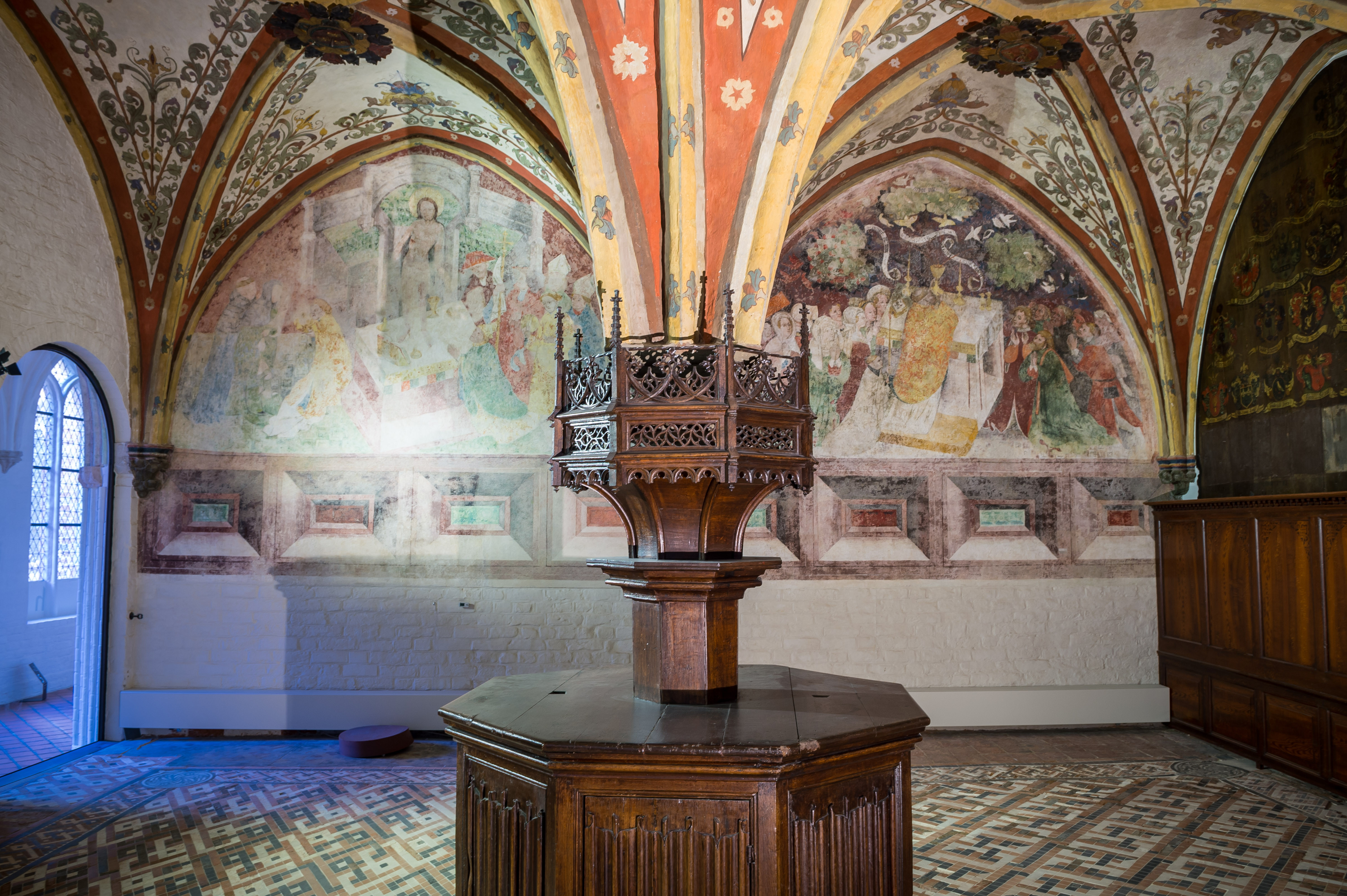 Dr. Serafine Christine Kratzke, promovierte Kunsthistorikerin aus Schleswig-Holstein, führt durch die die historischen Räumlichkeiten des Burgklosters. Mit besonderem Blick auf Bau- und Bildkunst der Schwarzen Mönche bietet sie dabei spannende Einblicke in die Lebenswelt des Mittelalters und den Wert dieses Baudenkmals.