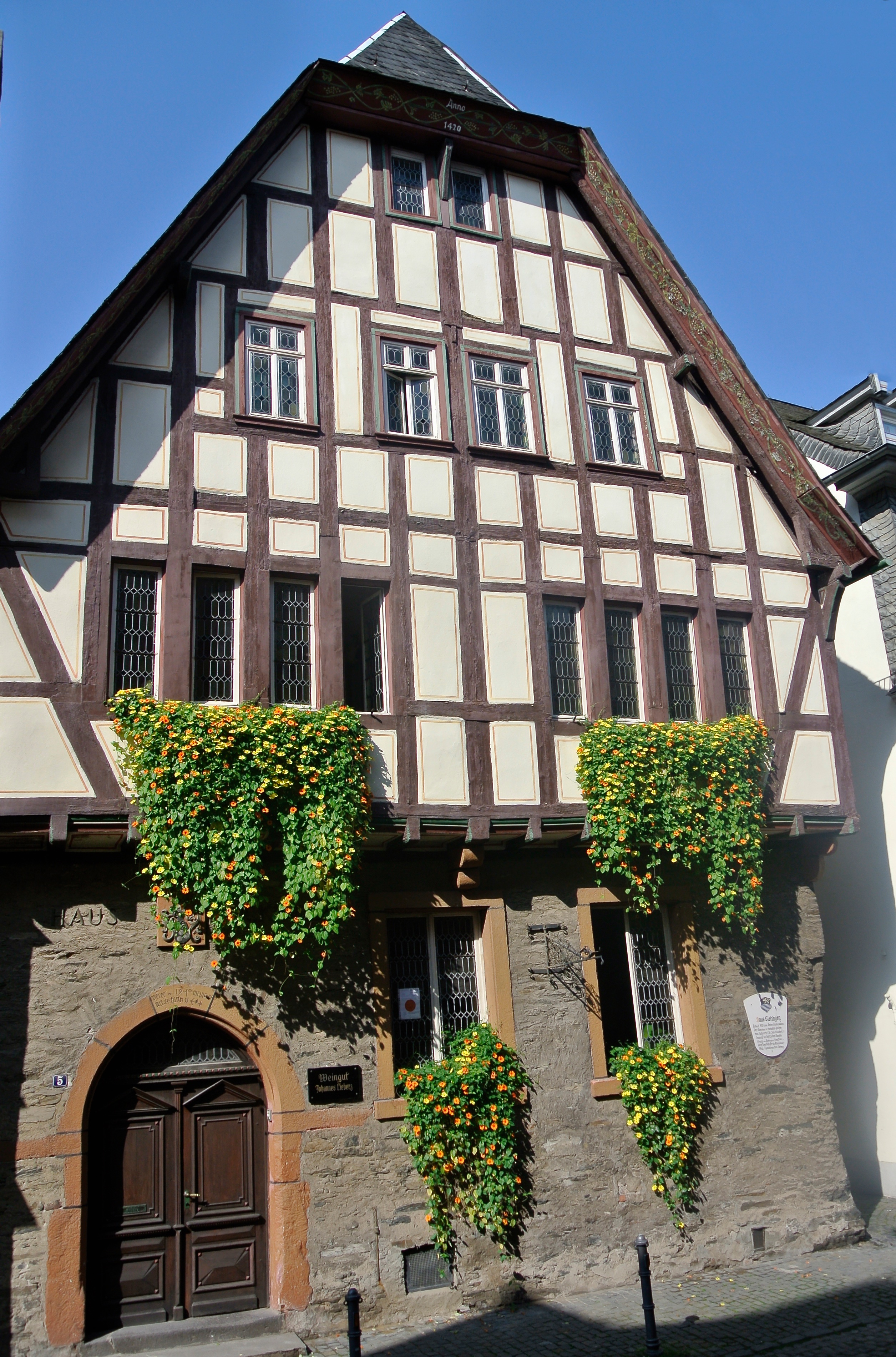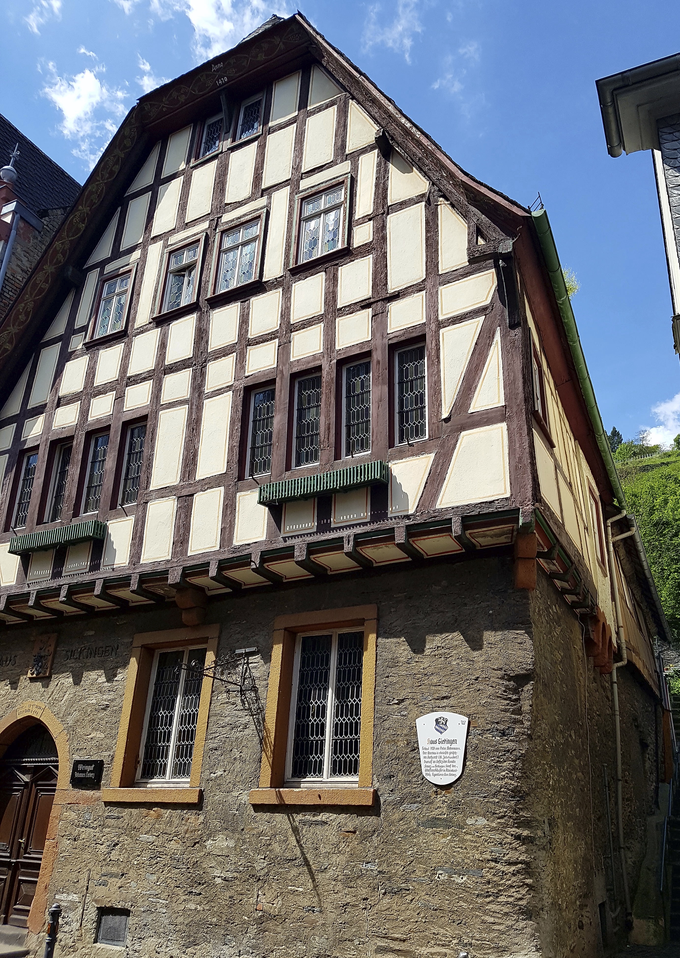 Spätgotischer Winzerhof von 1437. Dreigeschossiger Giebelbau in Ständerbauweise mit sehr steilem Schieferdach. Inschrift über dem Portal von Peter Ackermann, 1450. Rückwärtiges Kelterhaus mit tonnengewölbtem Keller und Ziehbrunnen. Daran angeschlossen ein Winzergarten in Hanglage. Mit ihren Traufengassen und vorkragenden Fassaden ist die Hofanlage typisch für den damaligen Städtebau.