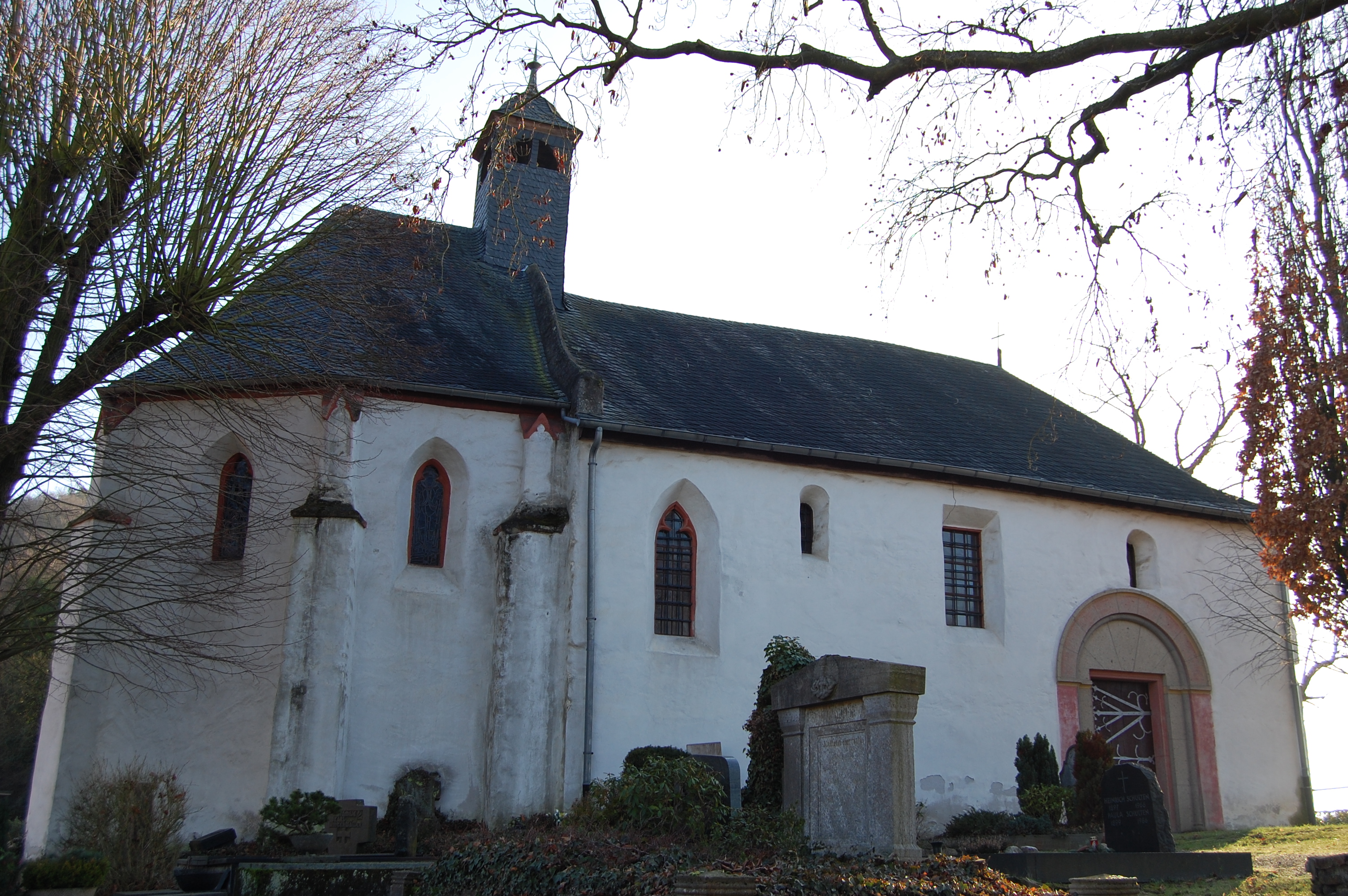 Das älteste erhaltene Gotteshaus in Braubach wurde 1242 zum ersten Mal urkundlich erwähnt. Die Witwe des Landgrafen Philipp II. von Hessen, Anna-Elisabeth, ließ die kunsthistorisch interessante Kapelle im 16. Jh. zu ihrer Hofkirche ausbauen. Heute dient sie als Friedhofskapelle für beide Konfessionen und für besondere Gottesdienste.
