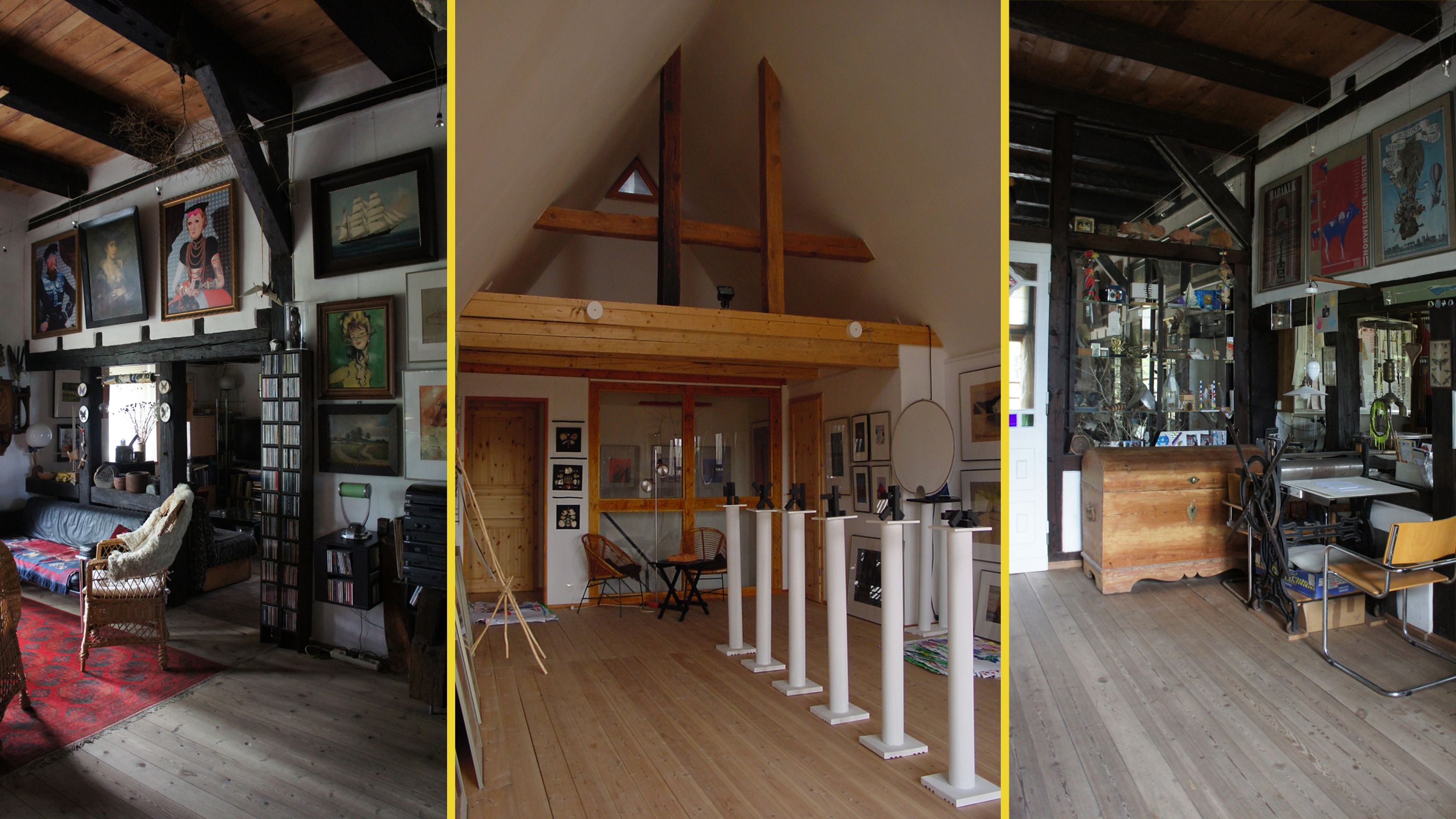 Treff vor dem Denkmal , Eräuterungen zum Bauwerk und zur Nutzung, Gruppenführung (bis 10 Personen) zur jeweils vollen Stunde durch das Denkmal mit Gesprächen über künstlerische Praktiken anhand von Beispielen in der Galerie im Obergeschoss.