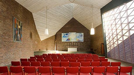 Hans Scharouns einziger Kirchenbau steht im Ruhrgebiet: Wenige Jahre nachdem der Architekt mit der Berliner Philharmonie weltweit Aufmerksamkeit erregt hatte, entwarf er für die anthroposophisch orientierte Bochumer Christengemeinschaft 1965-68 eine Kirche, die alle Regeln der traditionellen Sakralbaukunst hinter sich lässt.