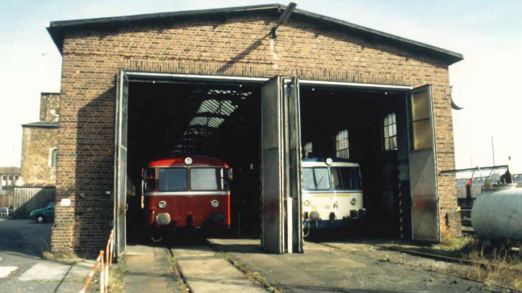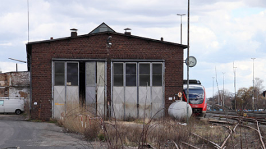 Preußischer Lokomotivschuppen: 1885 wurde der Rechteck-Lokschuppen als große Halle mit Toren, Fensteranlagen, Bindern und Gleisanlagen in Bahnhofsnähe erbaut.