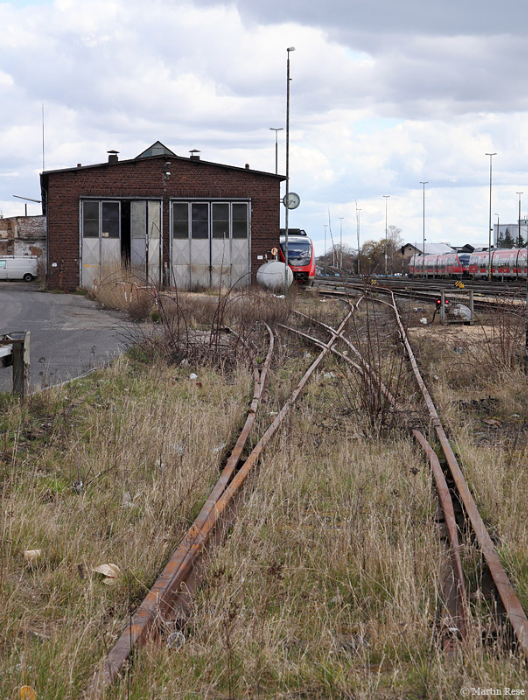 Preußischer Lokomotivschuppen: 1885 wurde der Rechteck-Lokschuppen als große Halle mit Toren, Fensteranlagen, Bindern und Gleisanlagen in Bahnhofsnähe erbaut.