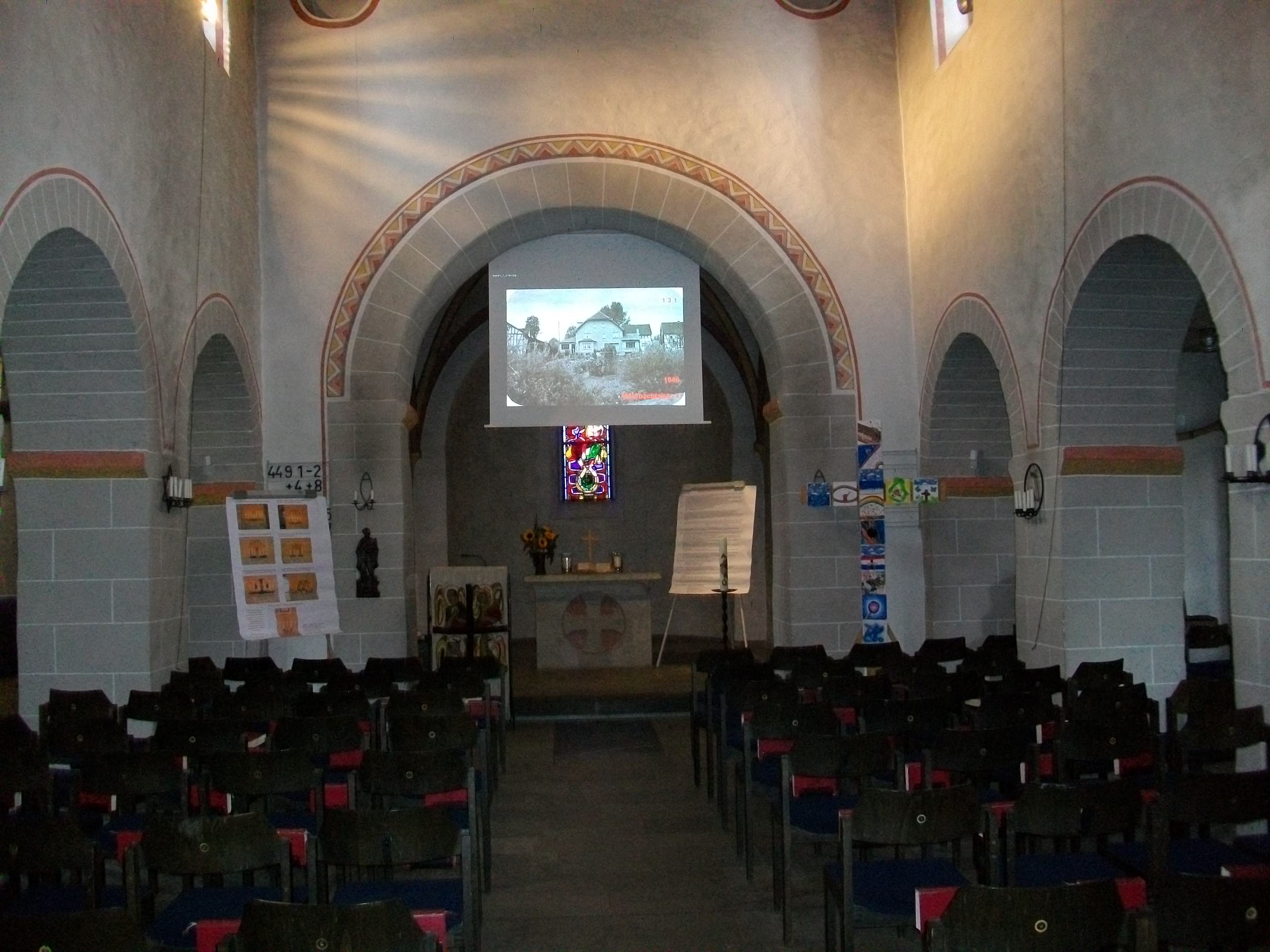 Die dreischiffige Basilika wurde um 1200 erbaut und im 18. Jh. mit einem Fachwerkaufbau aufgestockt. Ihre beherrschende Lage über dem kleinen Fachwerkdorf und die mächtigen Pfeiler im Innenraum sind für Liebhaber alter Dorfkirchen beeindruckend.