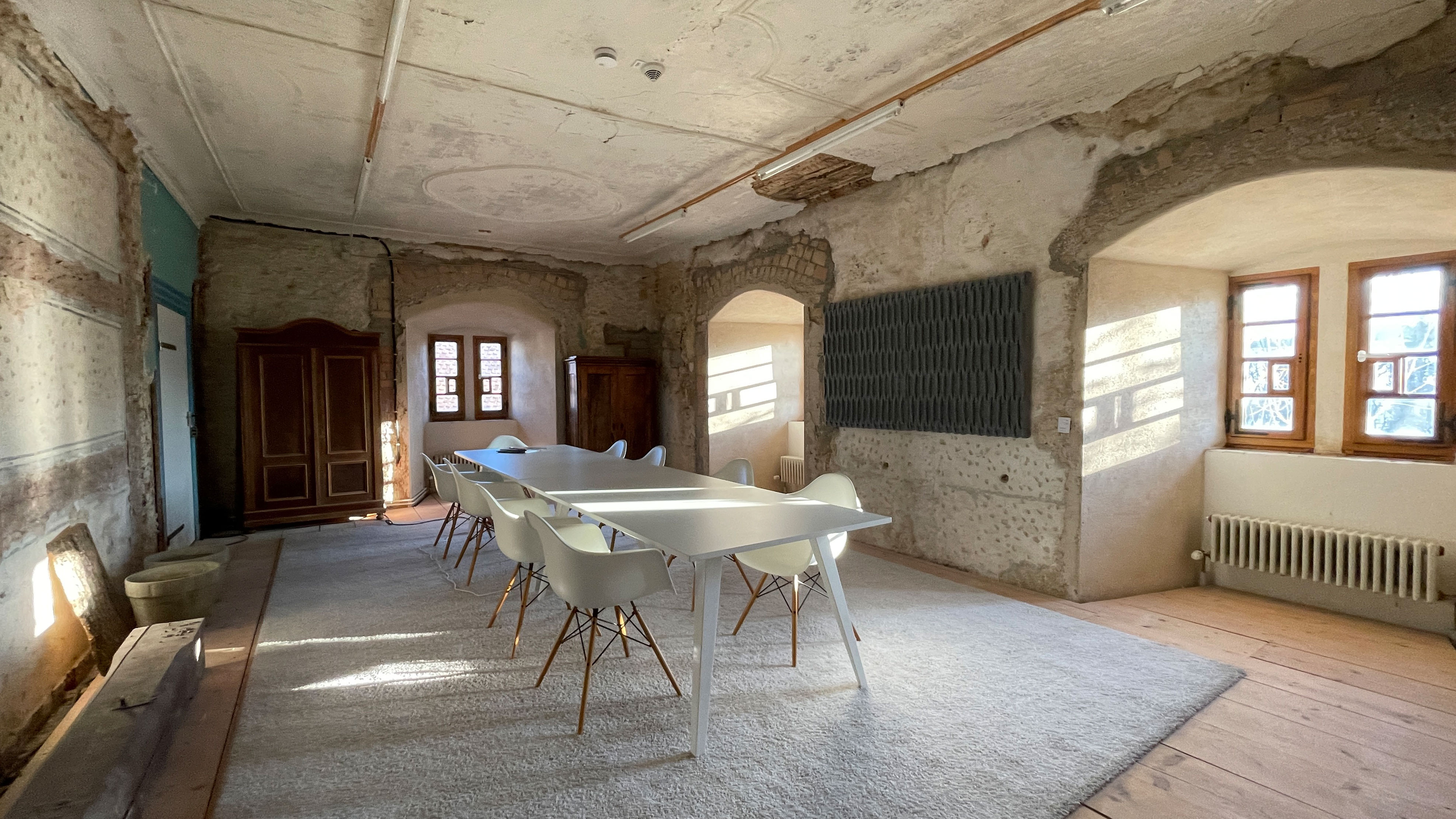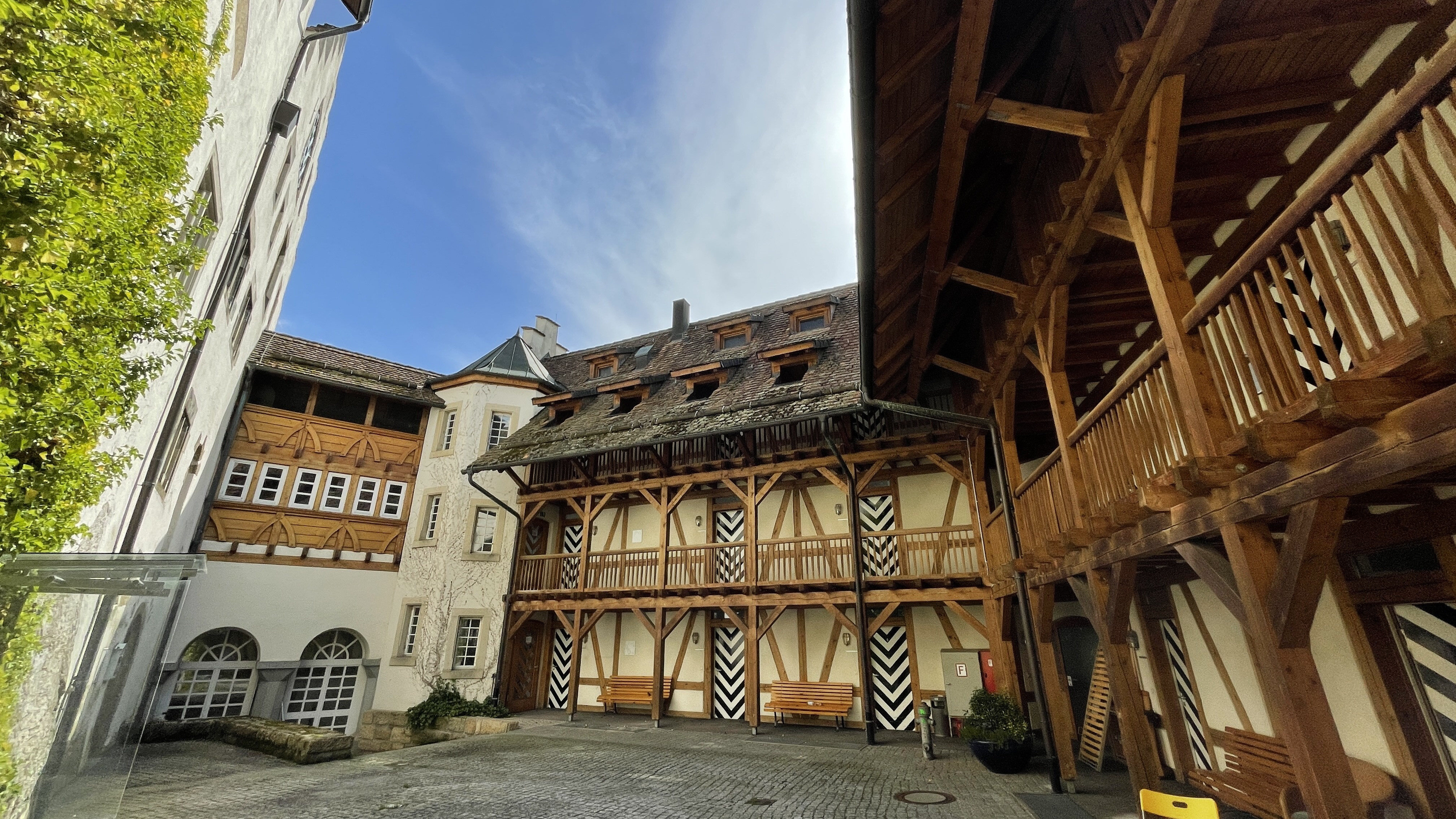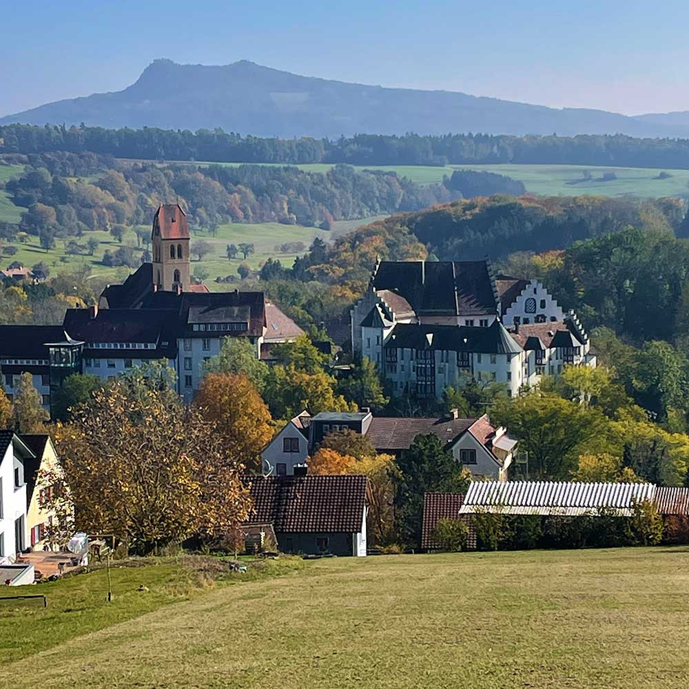 Im 11. Jh. als Burganlage gebaut. 14 Jh.: Die Herren von Klingenberg erweitern die Burg. 1499 Zerstörung der Burg durch die Eidgenossen. Ab 1511 ließ die Deutschordenskommende Mainau das jetzige Schloss als repräsentativen Amtssitz des Mainauer Obervogts erbauen. Ab 1806 Sitz des Bezirksamts Blumenfeld. Ab 1864 im Besitz der Freiburger-Kurie-Kindererziehungsanstalt. Ab 1876 Gründung Spitalverein. 2015–21 keine Nutzung. Seit Juni 2021 sog. Summer of Pioneers.