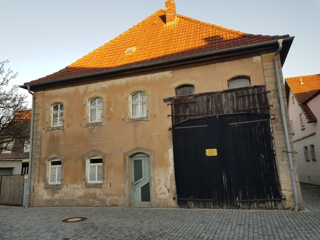 Die Synagoge wurde 1755/56 erbaut. Veränderungen in den Innenräumen erfolgten 1833 und Anfang des 20. Jhs. Nach der Schändung bei den Novemberpogromen 1938 wurde an der Westseite ein großes Tor eingebrochen und eine Durchfahrt zum Betsaal geschaffen. Bis vor wenigen Jahren diente das Gebäude als landwirtschaftliche Maschinenhalle. Außergewöhnlich ist der große Betsaal mit seiner erhaltenen, farbig gefassten Stuckdecke. Aktuell finden dort archäologische Grabungen statt.