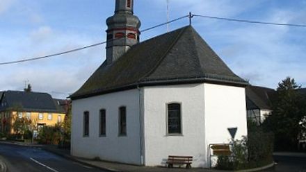 Die 1772 erbaute Kirche ist ein dreiseitig geschlossener Saalbau mit Dachreiter. In den Aufsätzen des Hochaltars und im Seitenaltar befinden sich Gemälde von Anton Schmitz aus Zell von 1776 mit dem Heiligen Wendelin als Abt von Tholey, als Schutzherr über Flur und Vieh und als Pestpatron. Die Mensaverkleidung ist bunt bemalt. Die Kanzel steht auf der linken Seite. Die bunten Glasfenster stellen dar: Kreuzigung, Kreuzabnahme, St. Borromäus, St. Nikolaus, St. Josef und St. Wendelinus.