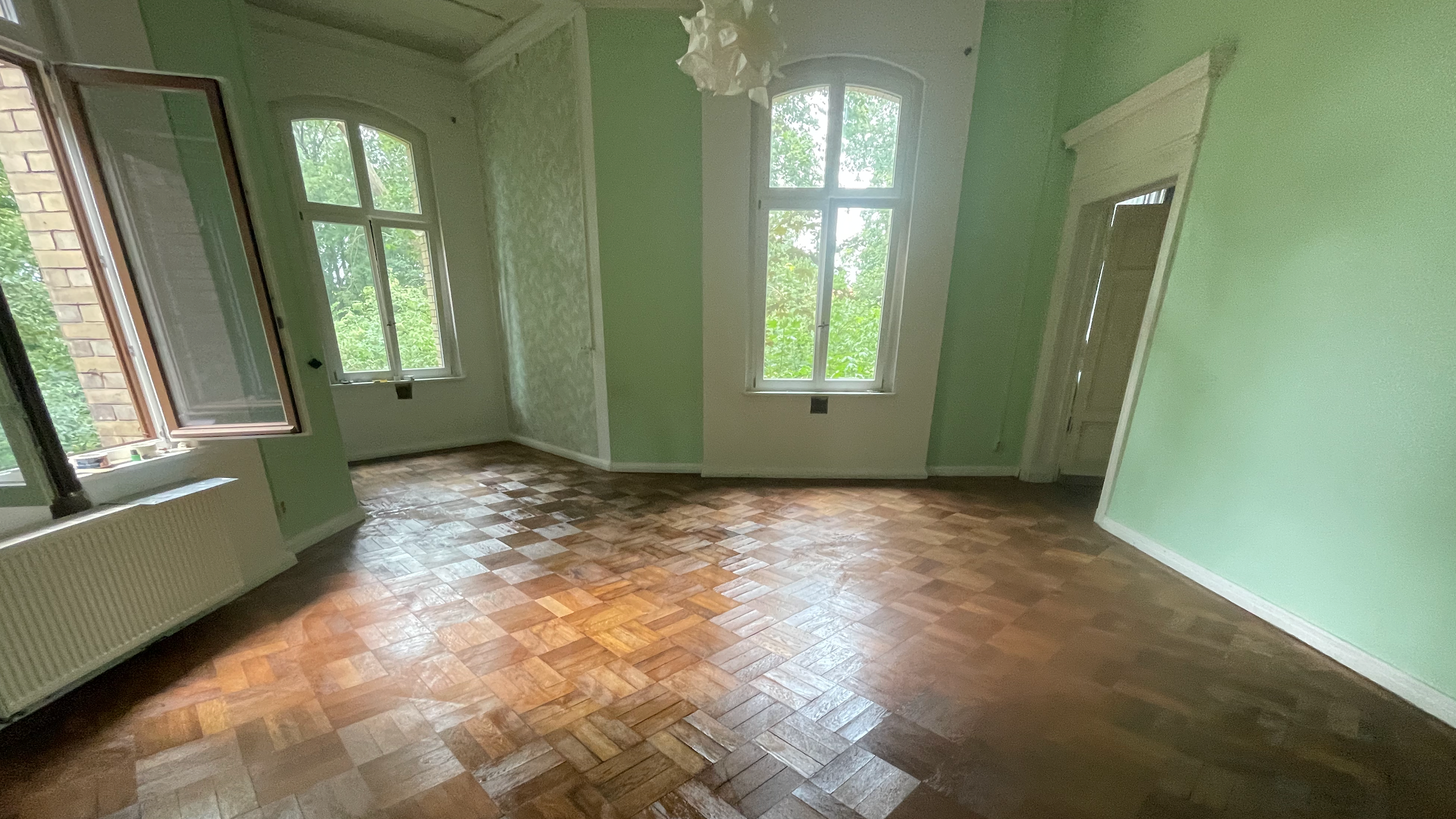 Das im 19. Jahrhundert massiv erbaute, ehemalige Gutshaus der Familie Kraaz verfügt über eine Lichtkuppel/verglastem Lichthof und erhöhte Ecktürme. Es gibt einen massiven Wintergarten mit Dachterrasse und Speiseaufzug im Treppenhaus. Im Gebäude wurde eine Decke entfernt und ein 12x8m großer Tanzsaal gefunden.