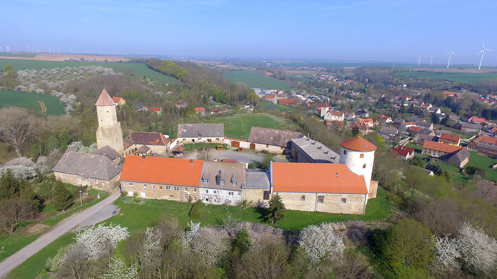 In der Ortschaft Freckleben erhebt sich über der Wipper die romanische Höhenburg aus dem 12. Jh. Von den drei in der Literatur genannten Bergfrieden sind heute noch zwei sichtbar, der runde, 2008 sanierte und zum Aussichtsturm umgebaute Bergfried I an der Ostseite der Unterburg und der Bergfried III auf der Westseite der Oberburg. Um 1200 wurde der Bergfried II auf der Oberburg errichtet. Im 5. und 6. Obergeschoss befinden sich die in Deutschland einmaligen Drehspindelleitern.